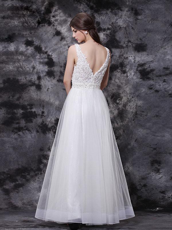 A-line Deep-V Floor-Length Chiffon Beaded Prom Dress