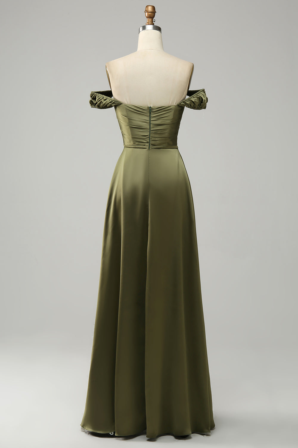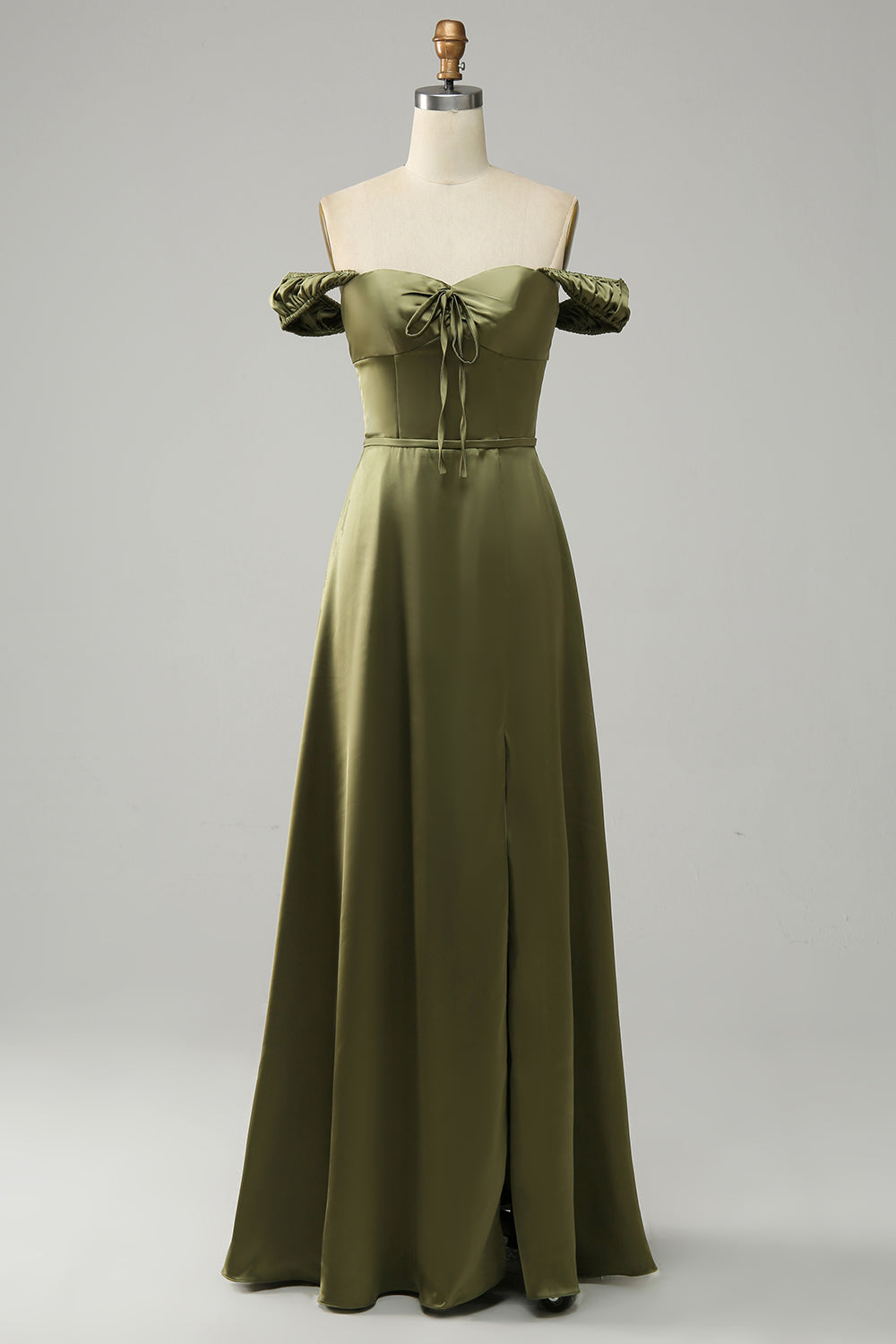 Army Green Off the Shoulder Long Bridesmaid Dress with Slit