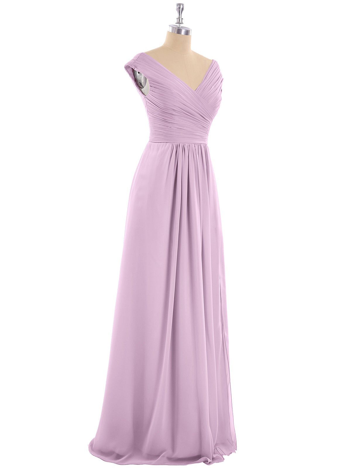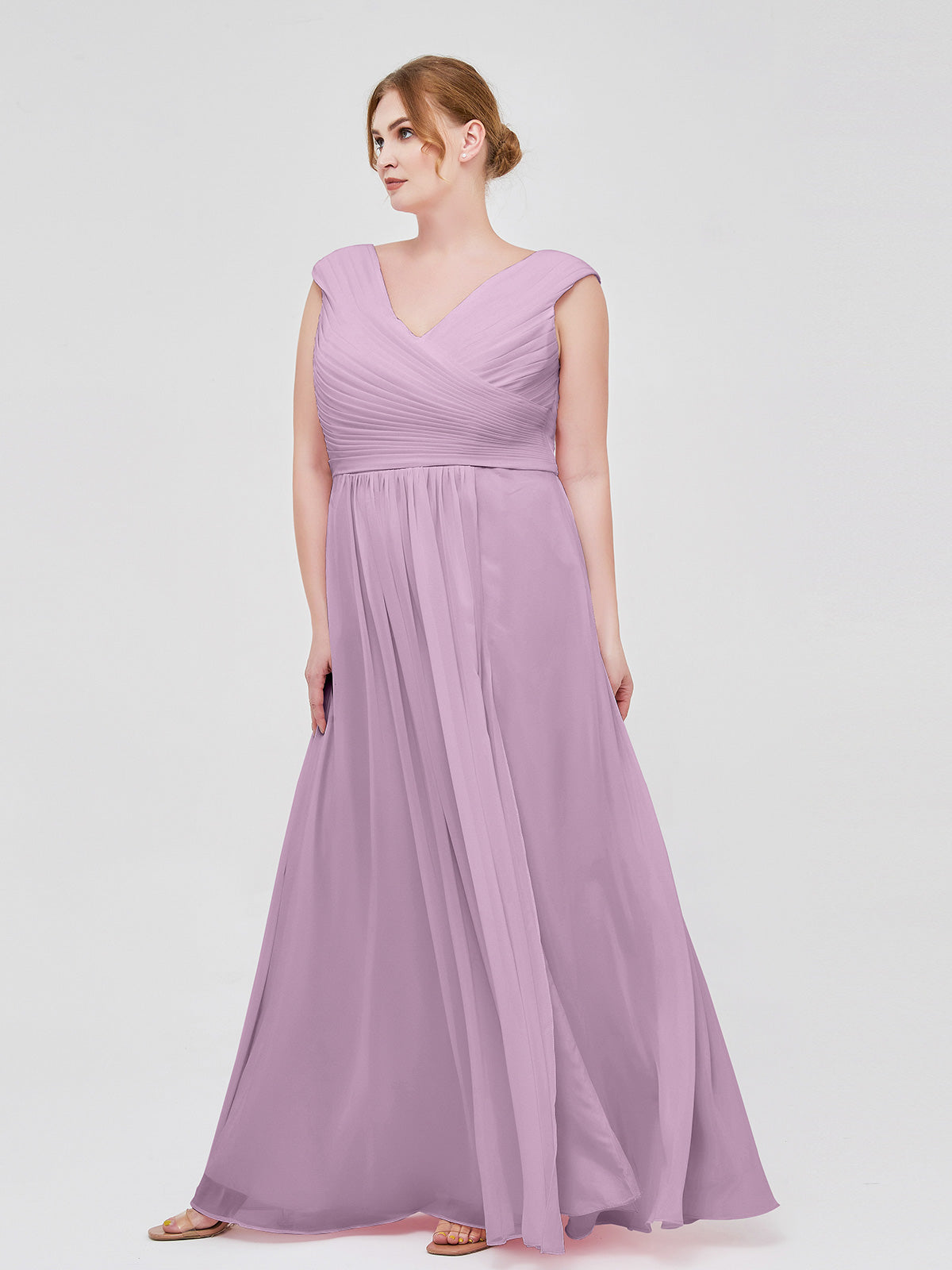 V Neck Chiffon Gown with Cap Sleeves Wisteria