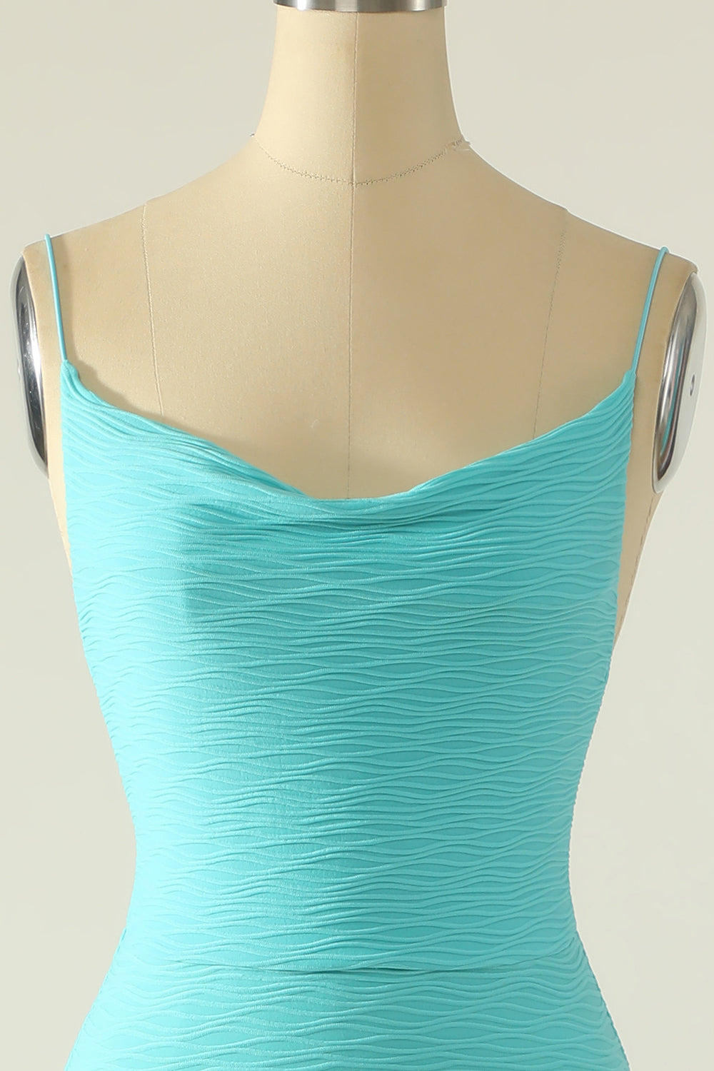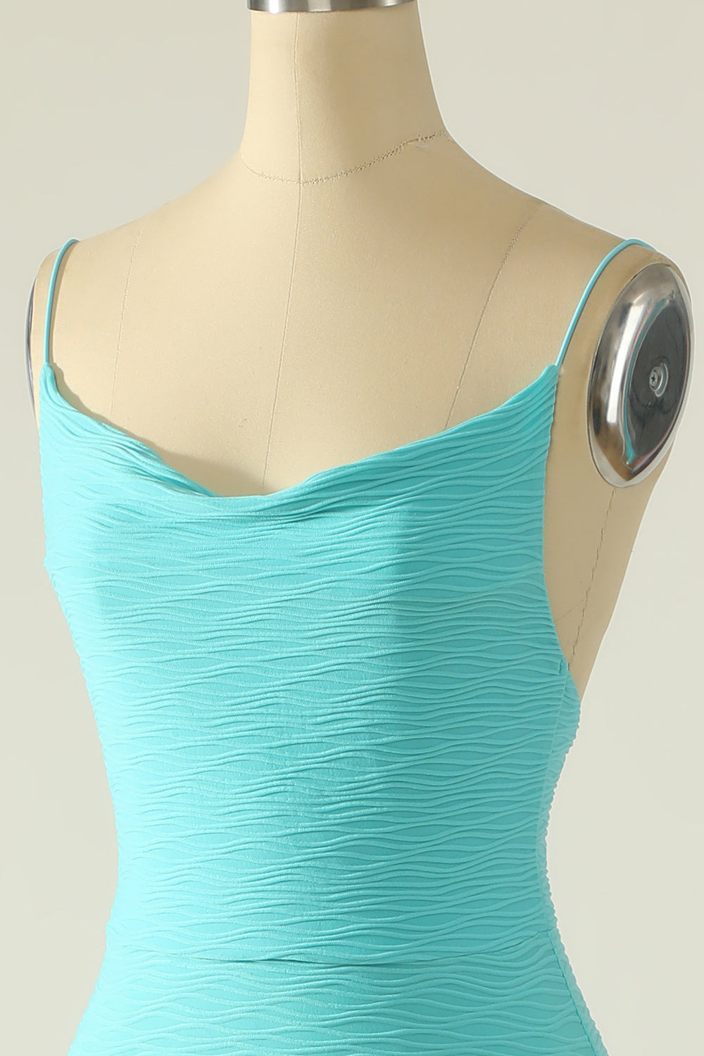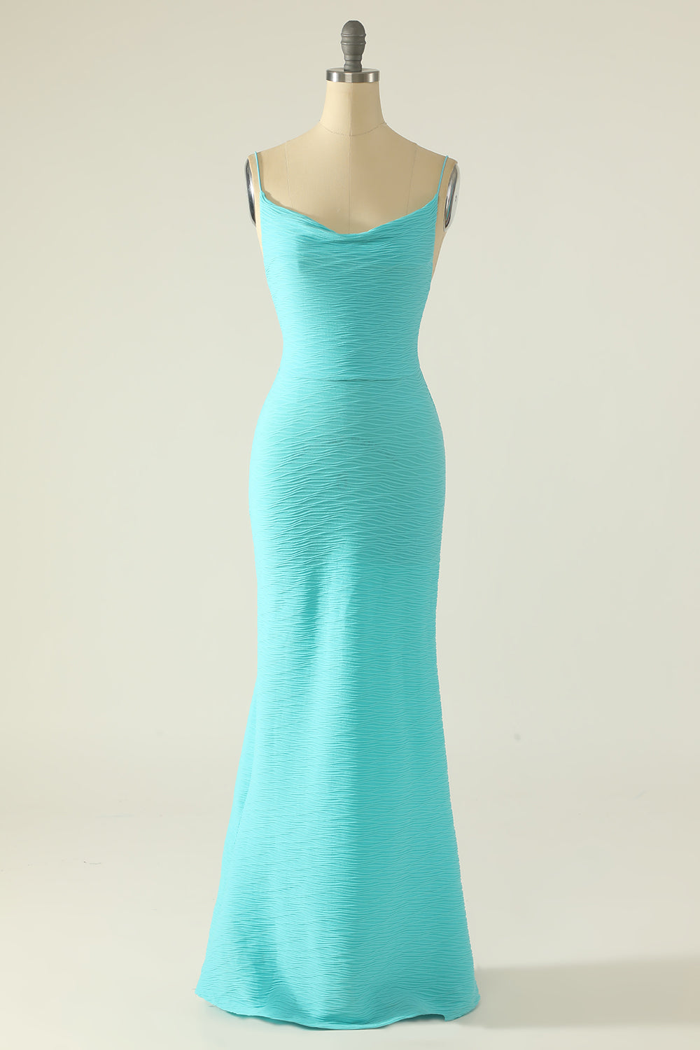 Blue Spaghetti Straps Mermaid Long Prom Dress