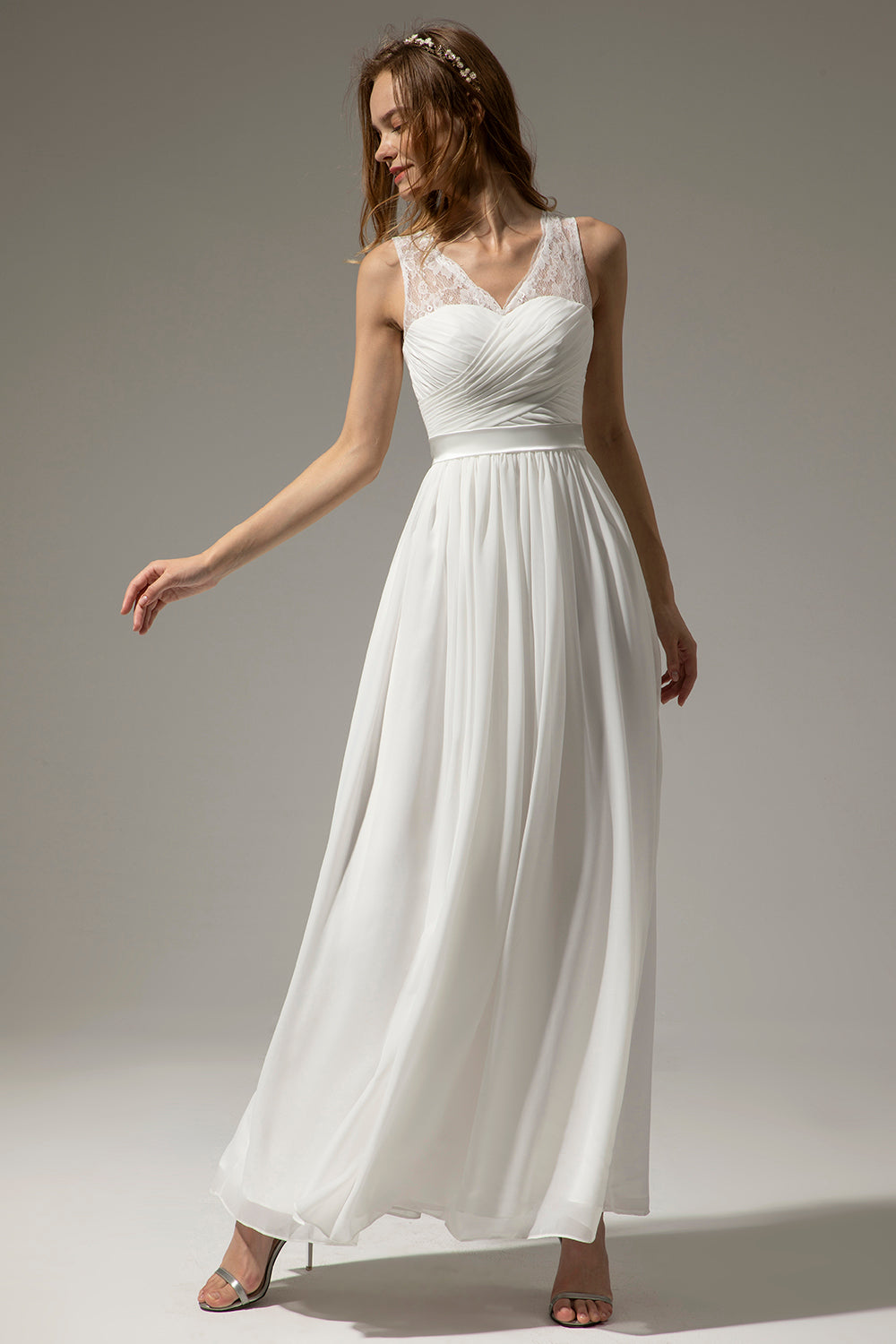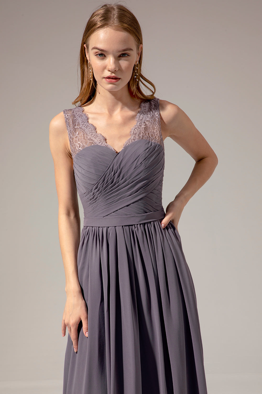This dress can compliment the duty of a bridesmaid. With a V neck cut and a sleeveless design, this burgundy bridesmaid dress will make you stand out. The dress also makes for a perfect fit for prom and other similar functions. The back of the dress is netted which adds to the elegance of the outfit. The dress is by no means a figure-hugging one but does justice to the figure of the person which will make you and every person who looks at it, fall in love.