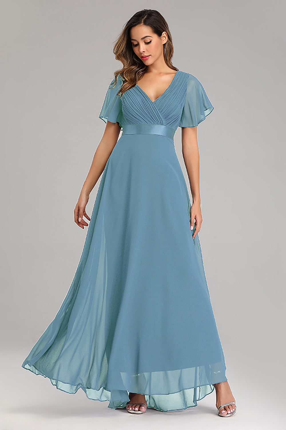 Dark Green Chiffon Long Bridesmaid Dress with Ruffles