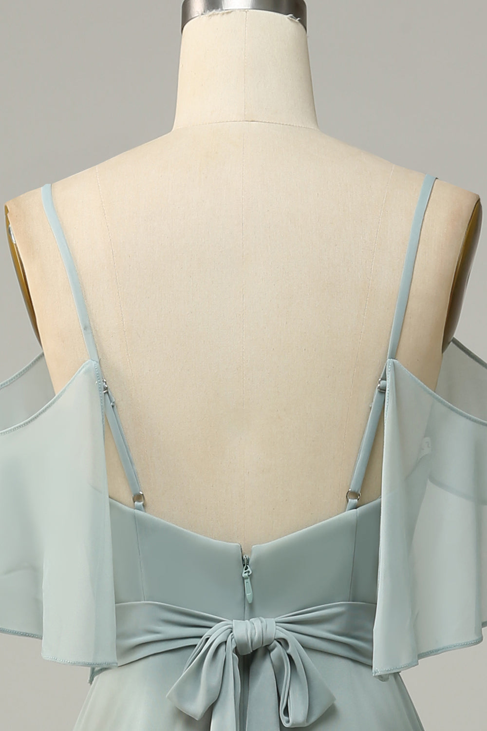 Dusty Sage Cold Shoulder A Line Long Bridesmaid Dress