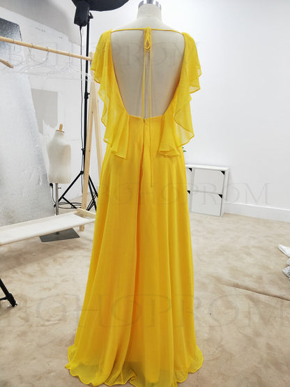 Elegant V-neck A-line Bridesmaid Dresses Chiffon Short Sleeves Gowns