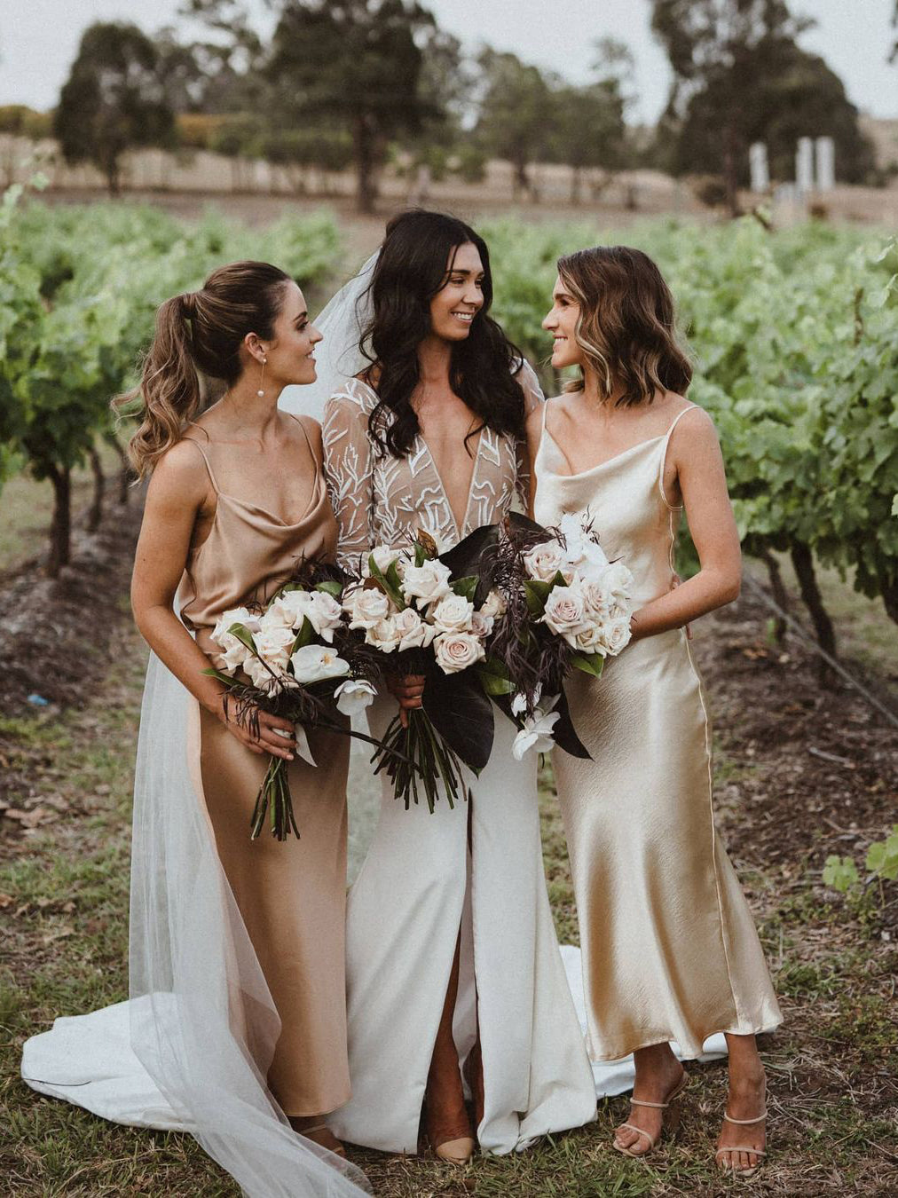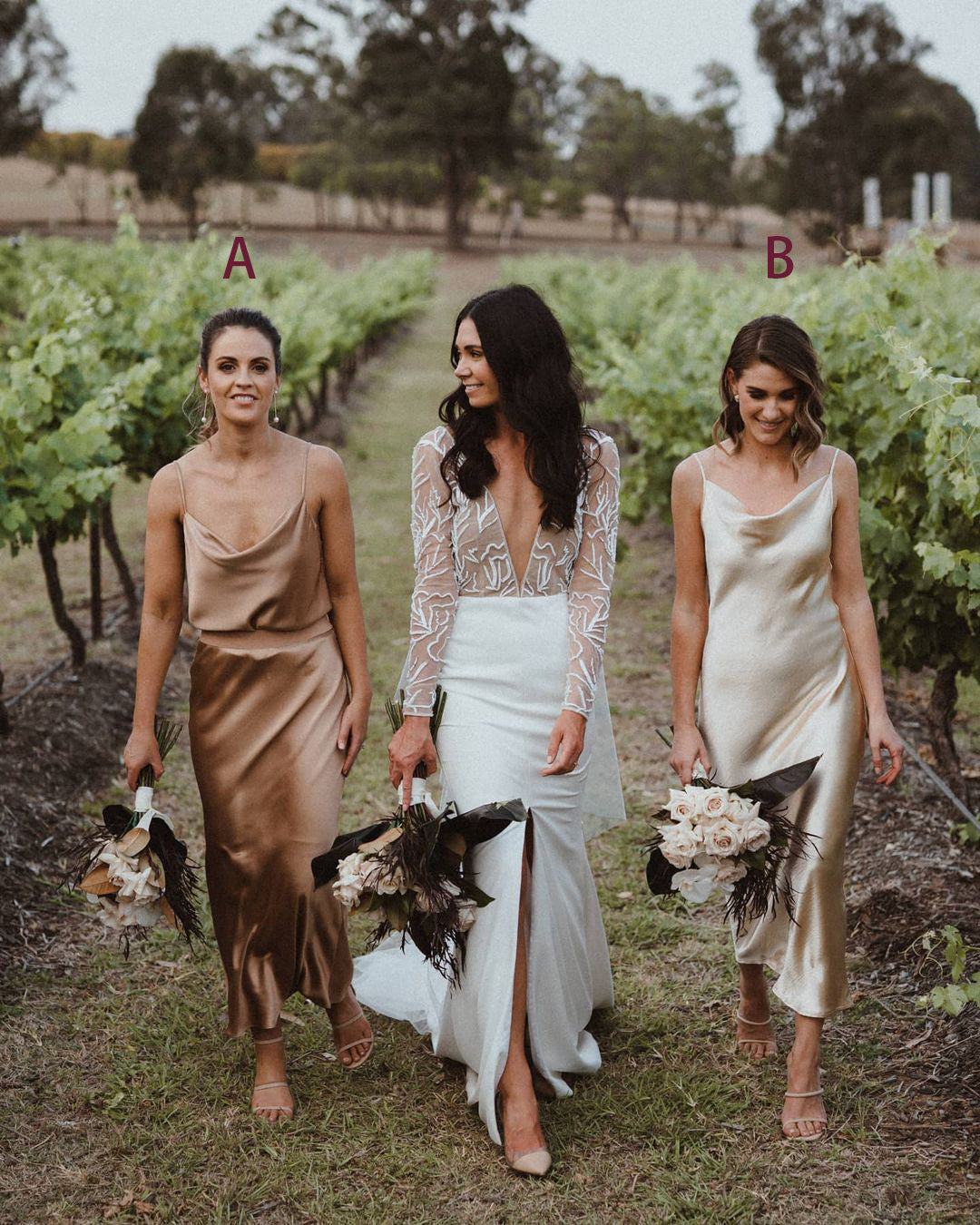 * The material of this bridesmaid dress is taffeta, which is featuring spaghetti straps neckline and tea-length skirt in sheath/column silhouette.