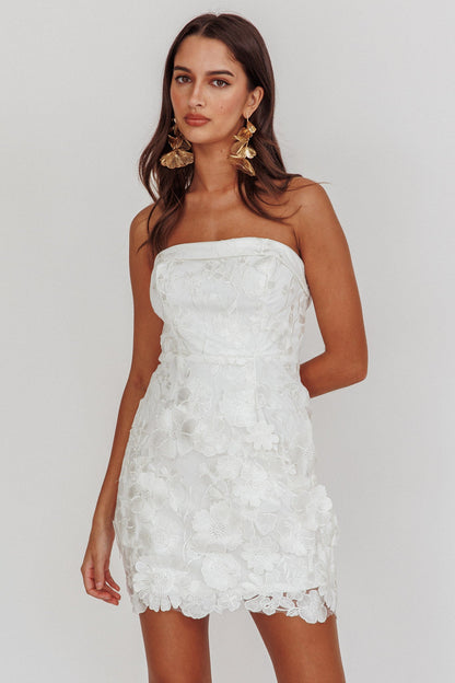 Make heads in turn in our stunning Flora Day mini dress. We are head over heels for its beautiful, 3D floral lace embellishment throughout. It's perfect for a bridal shower or special birthday dinner. Team it with white heels and a clutch for an unforgettable look.
