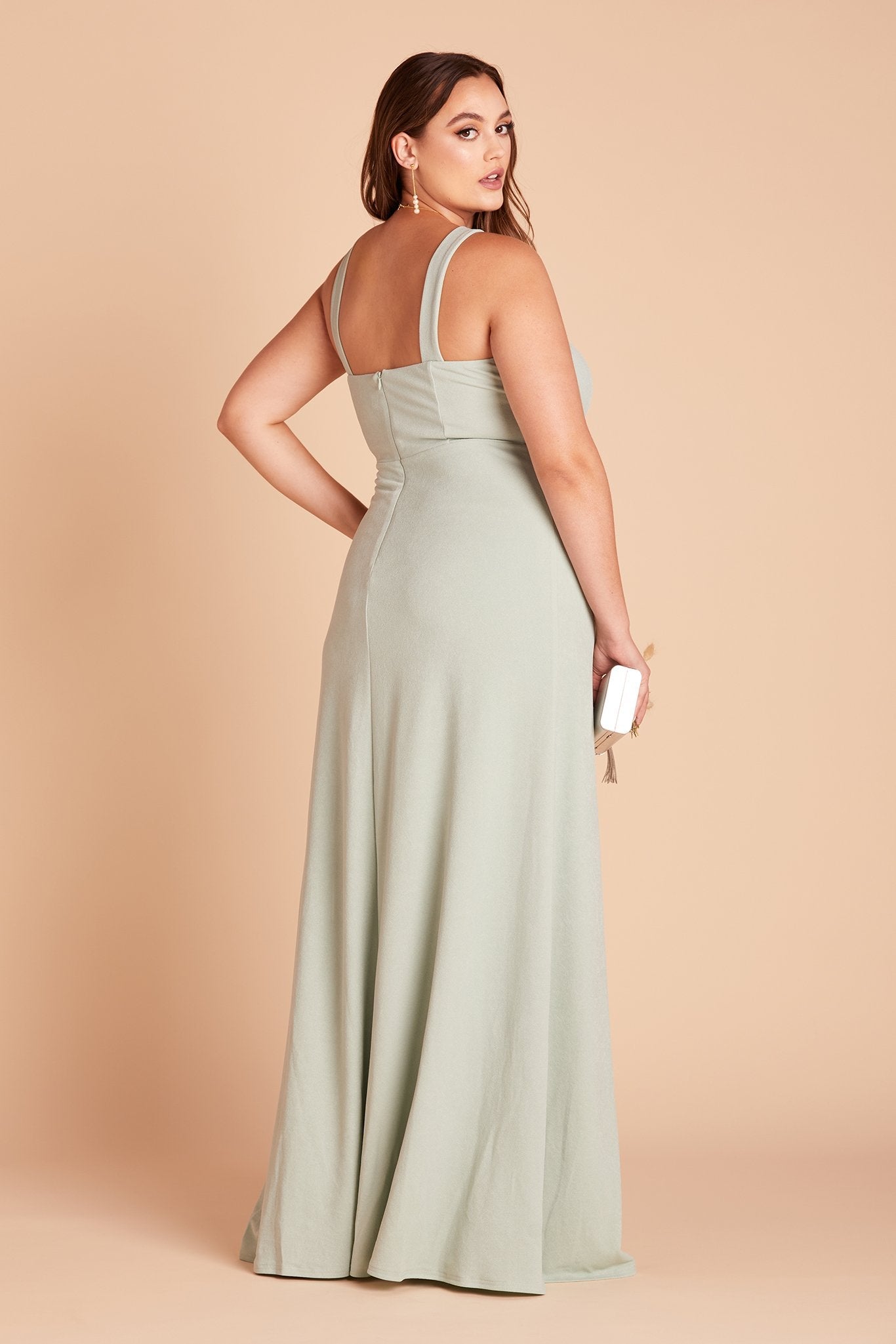 A fresh update on the halter look, the Gene crepe bridesmaid dress features an edgy criss-cross halter with flat, wide straps that highlight your shoulders and also brings a bit of the bodycon vibe on top (without it being overly sexy). She's sleek, seductive, and definitely knows how to party. Pair her with a soft up-do to balance out the modern look while showing off the shoulders, or go for long, loose waves that add a touch of romance.