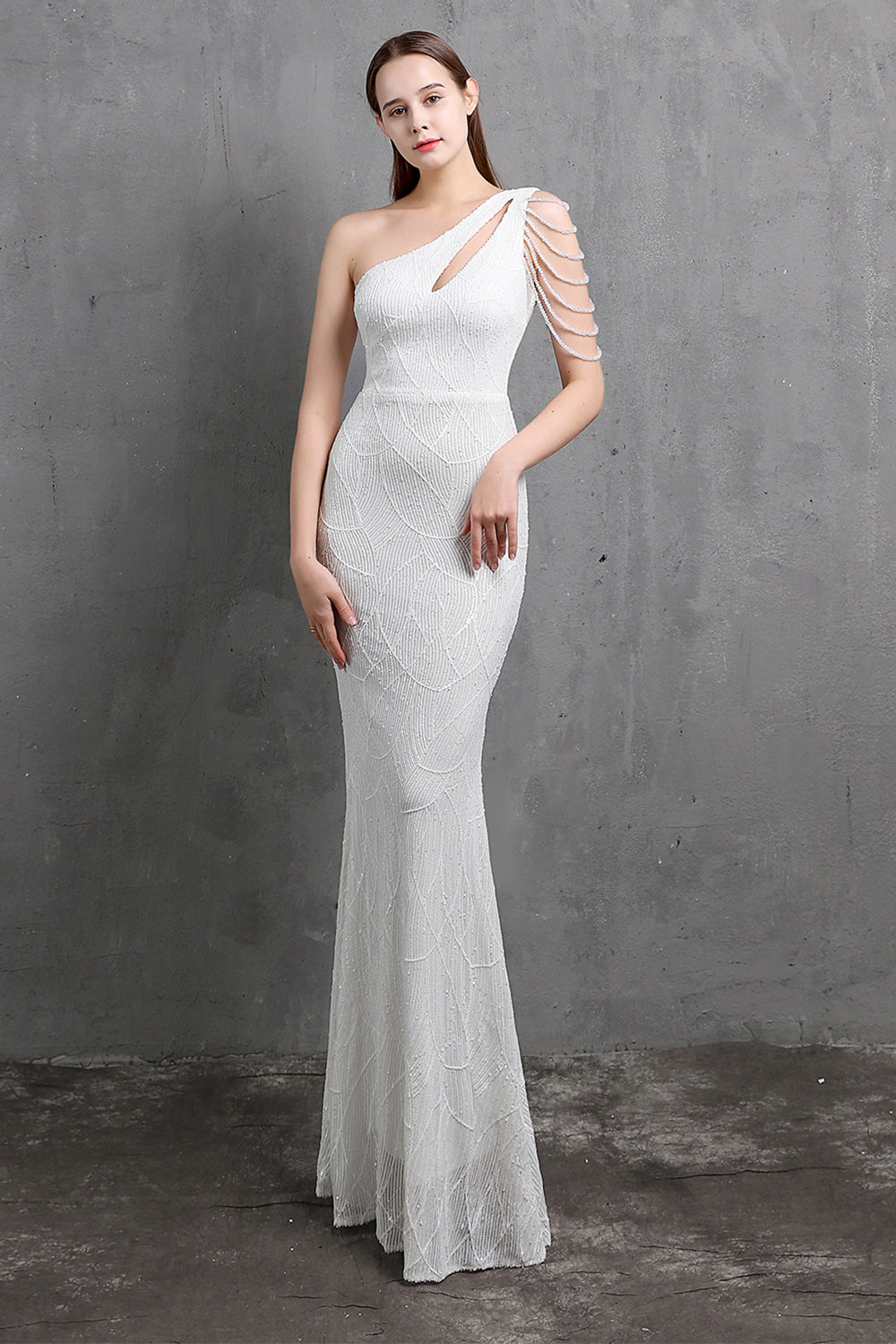 Gold Mermaid One Shoulder Sequin Prom Dresses