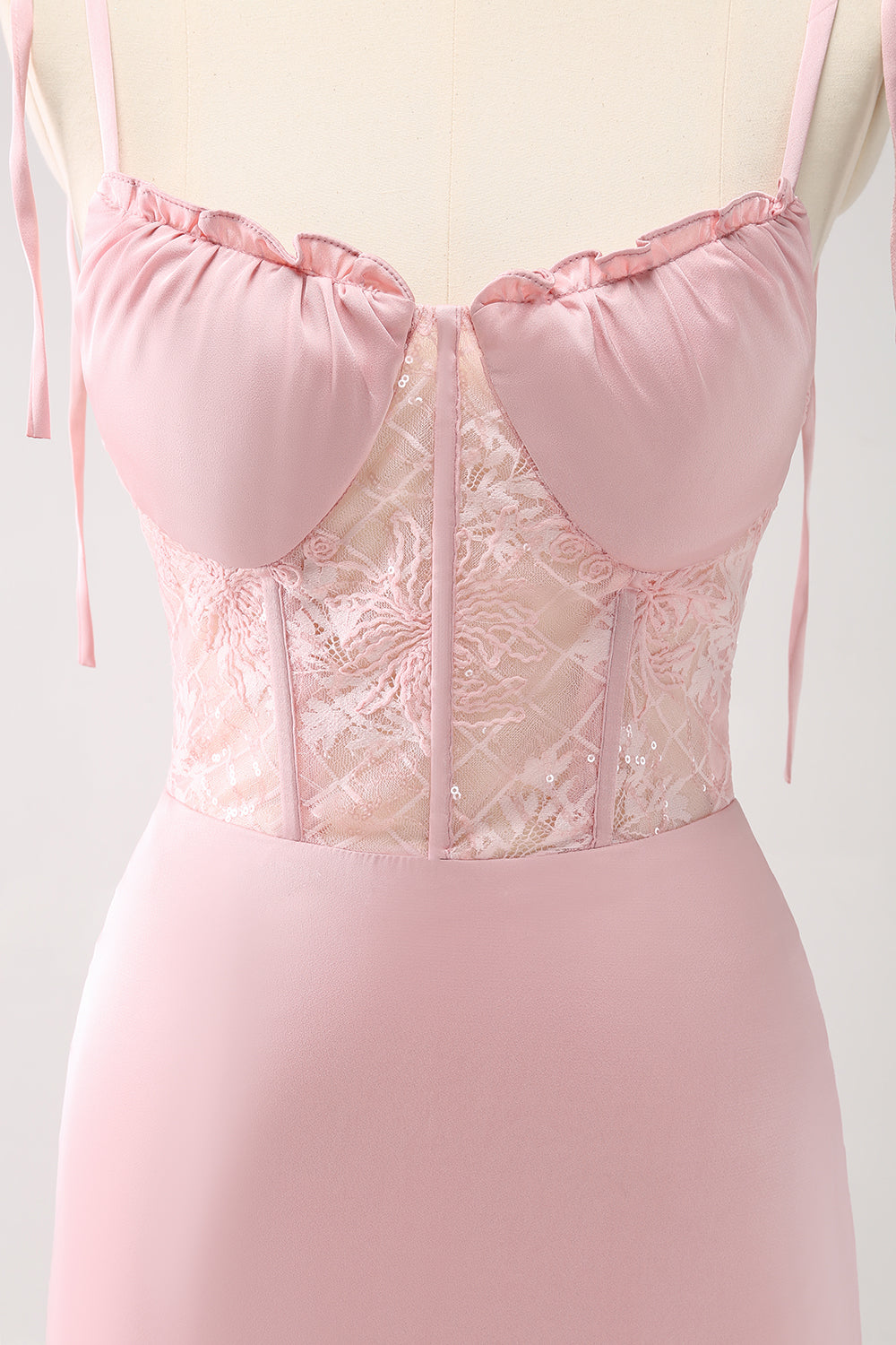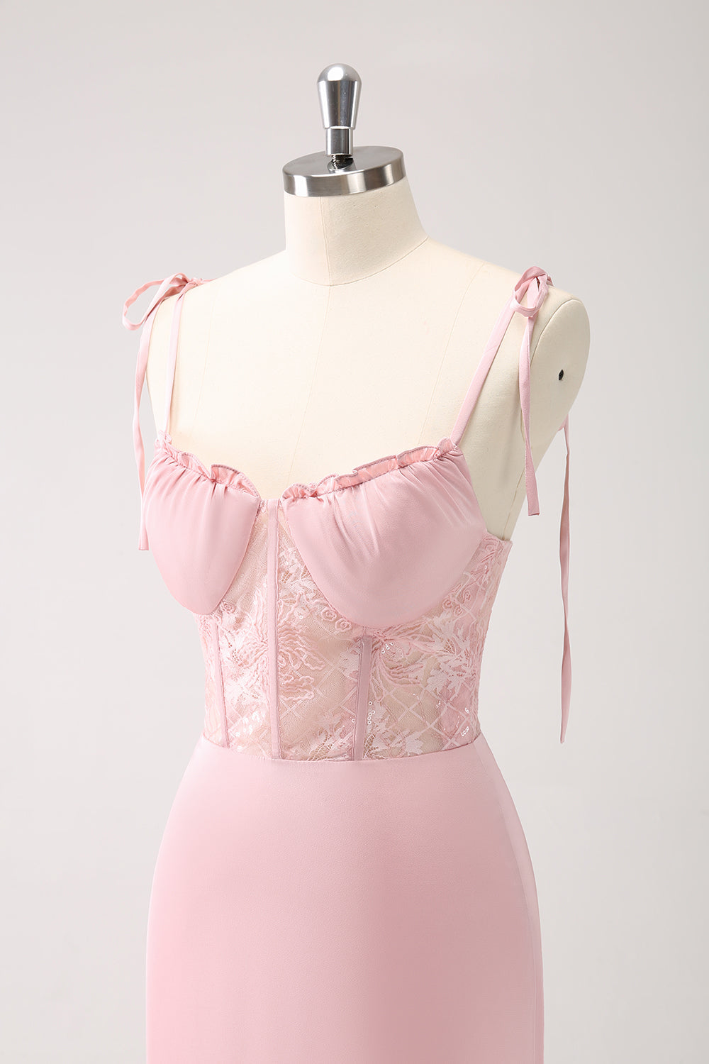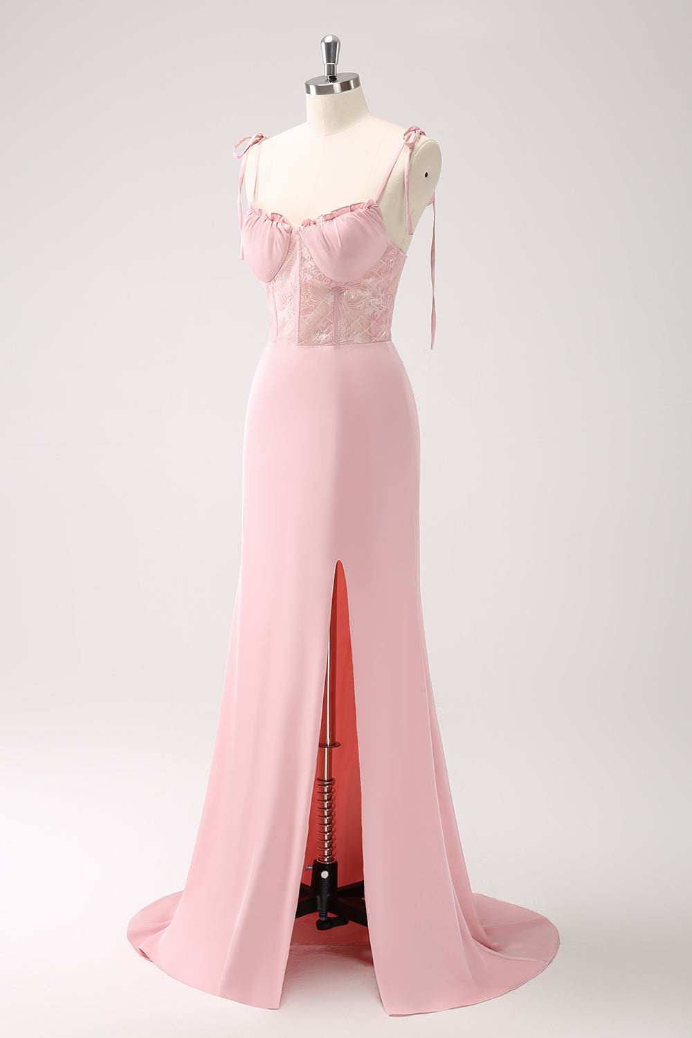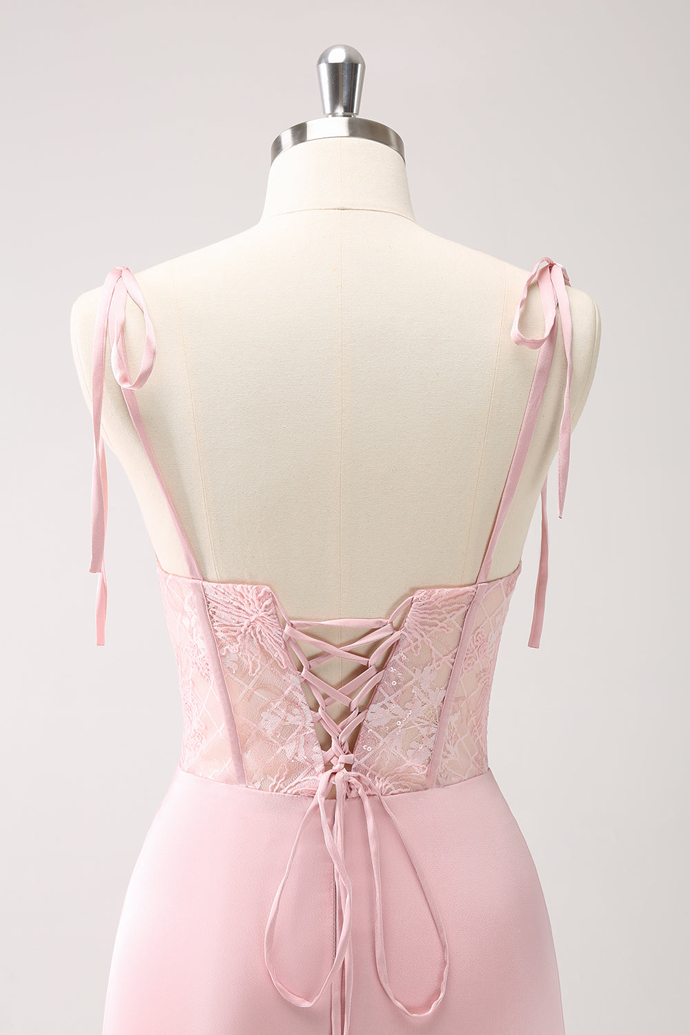 Green Mermaid Spaghetti Straps Satin Long Bridesmaid Dress with Slit