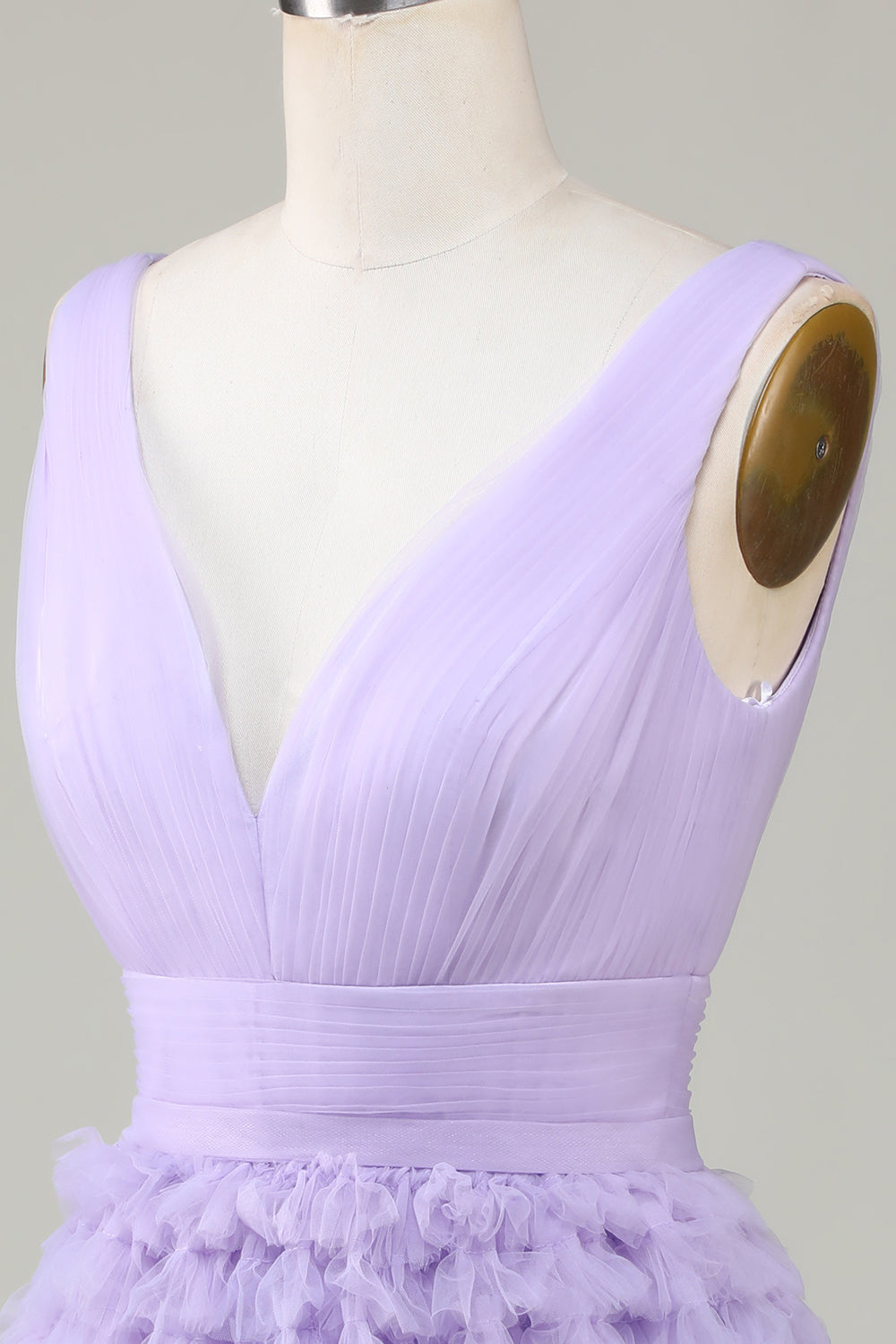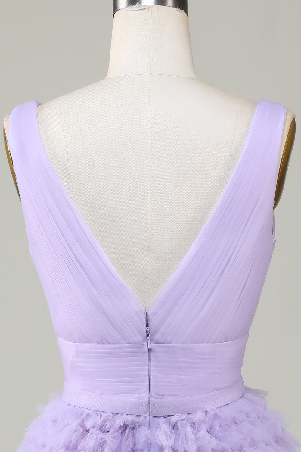Green Tulle V-Neck Short Prom Dress With Open Back