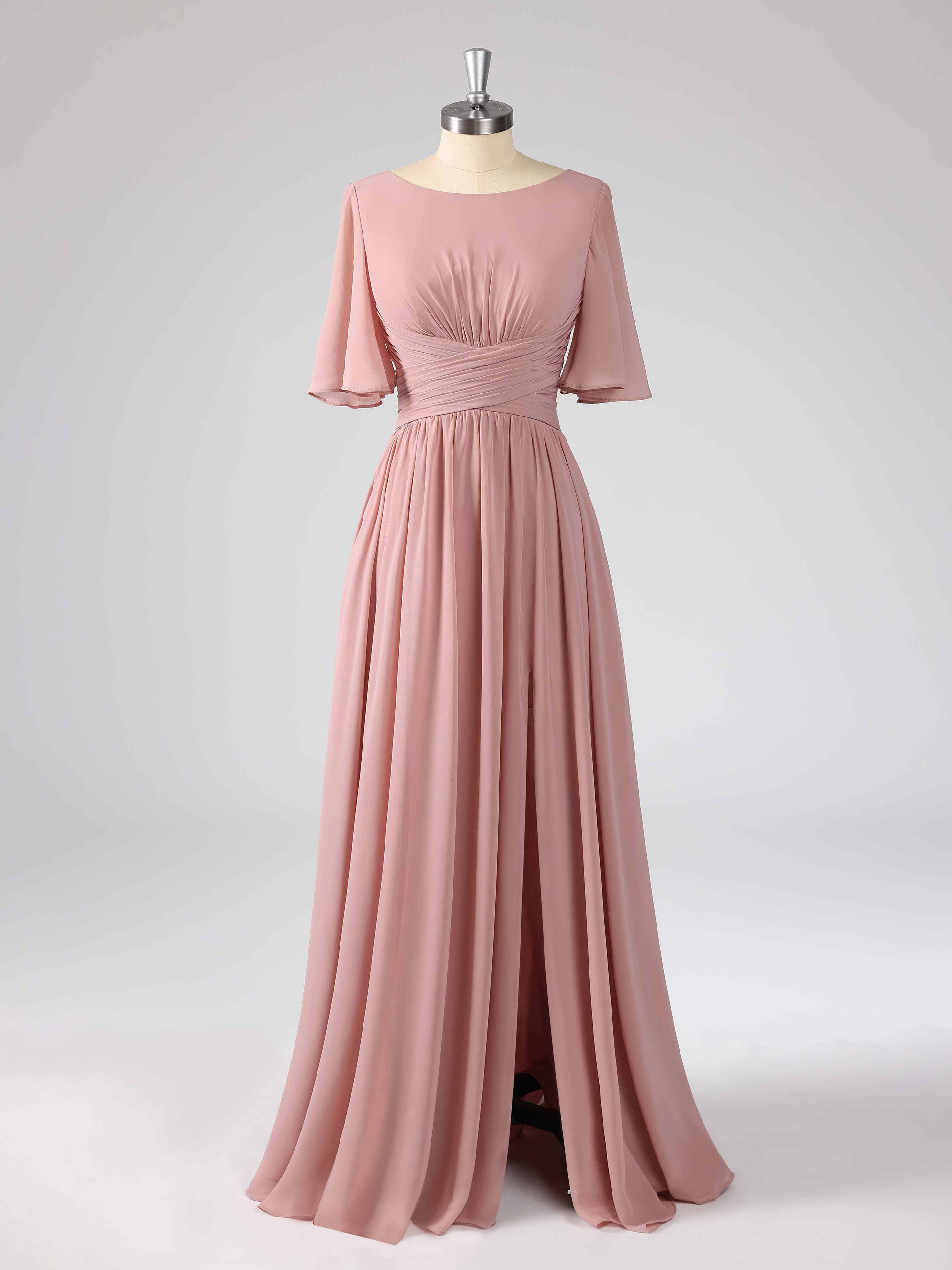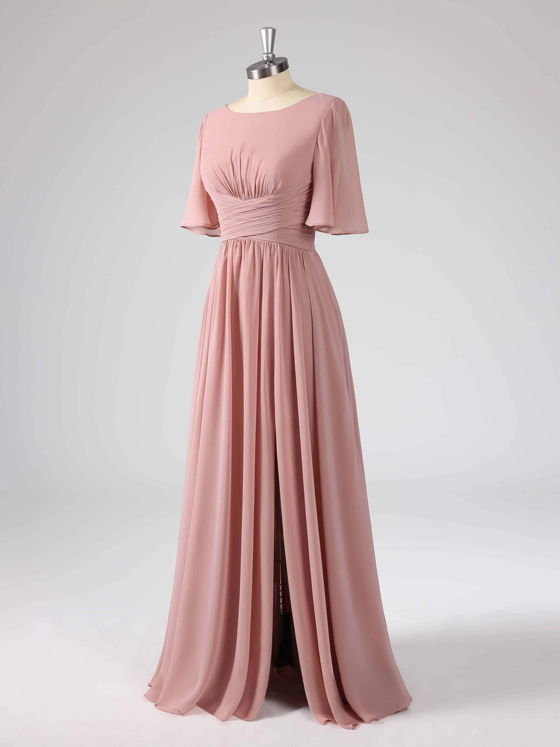 Layla Modest A-line Boat Neck Bridesmaid Dresses with Slit