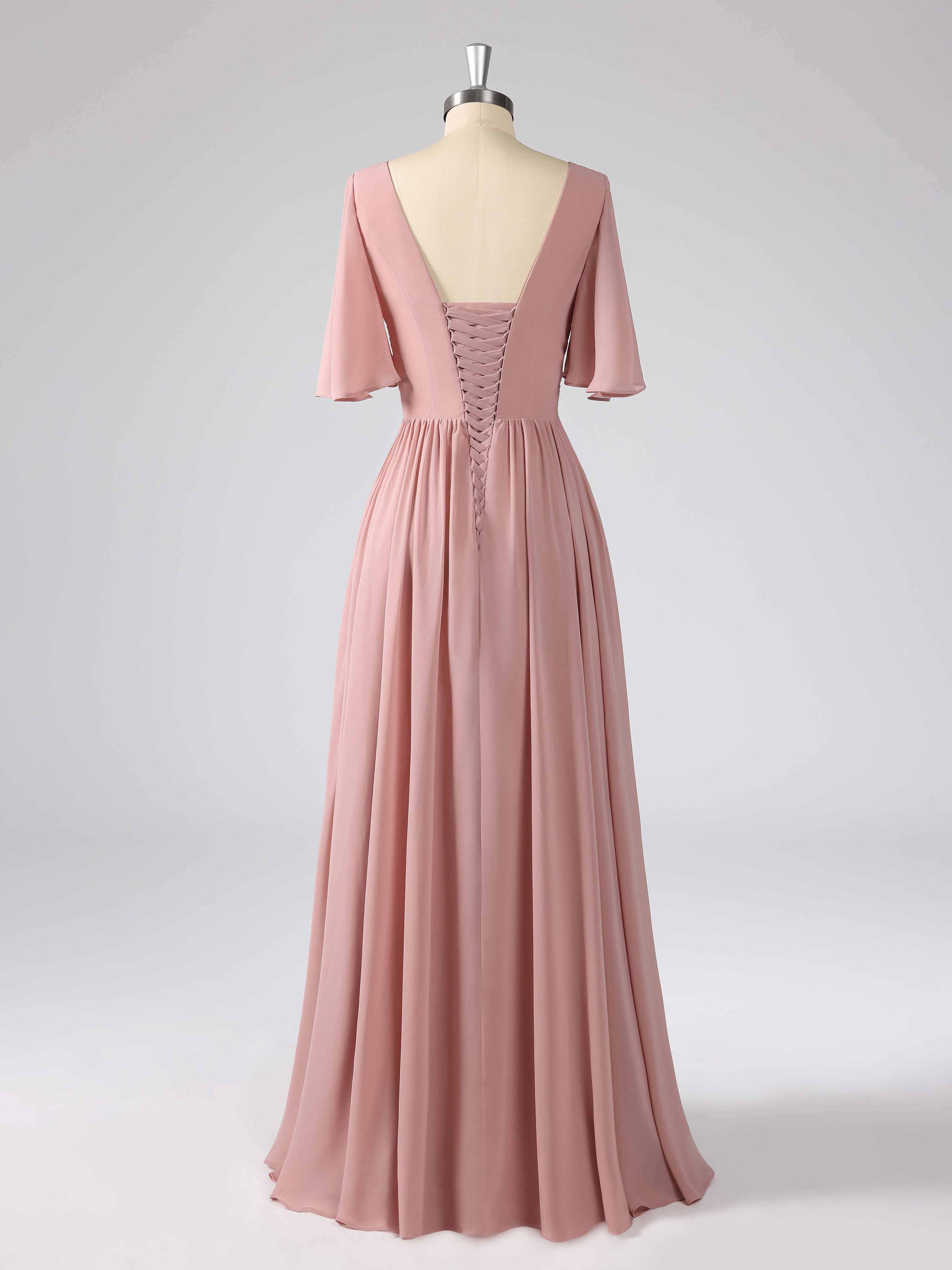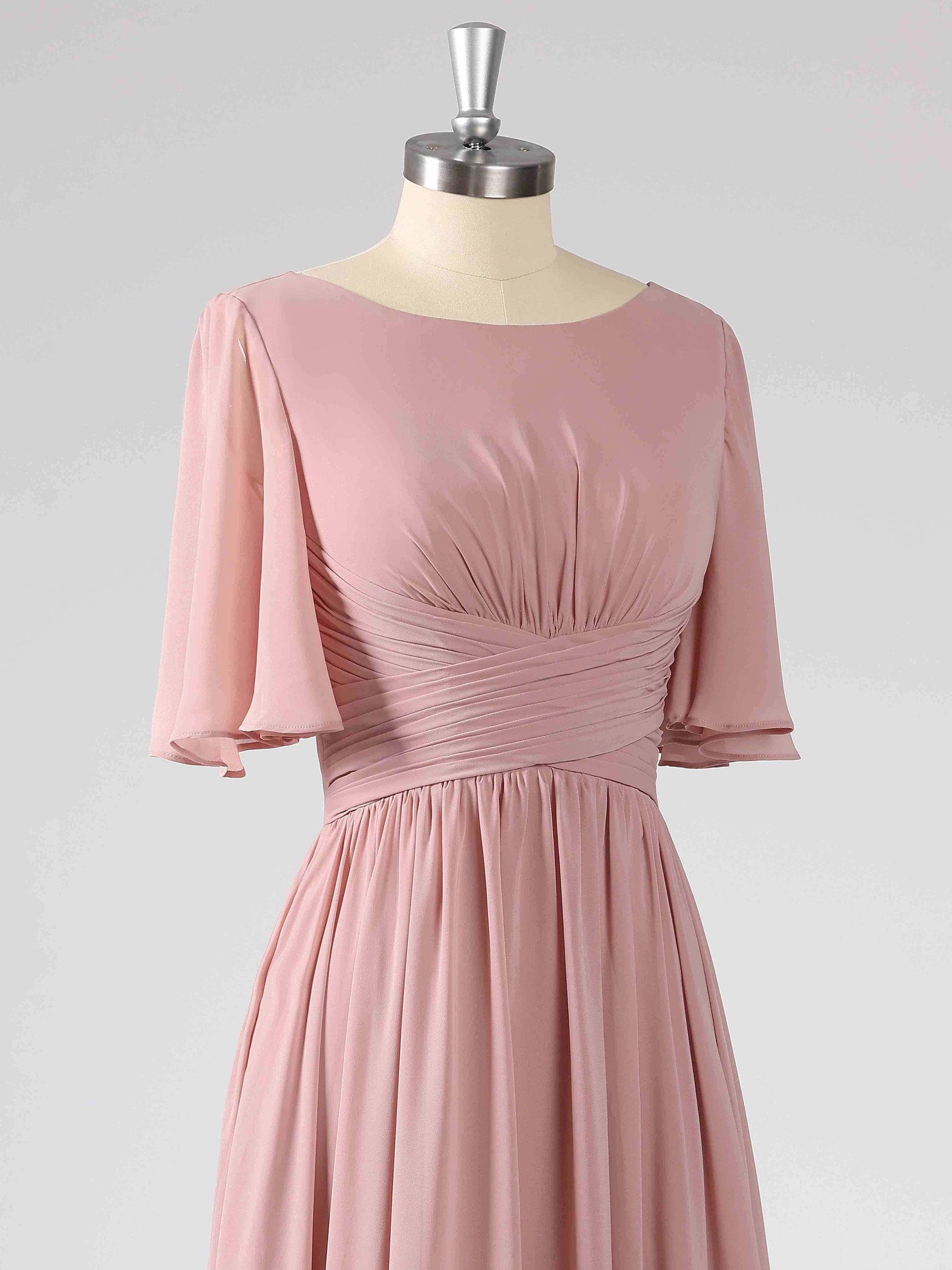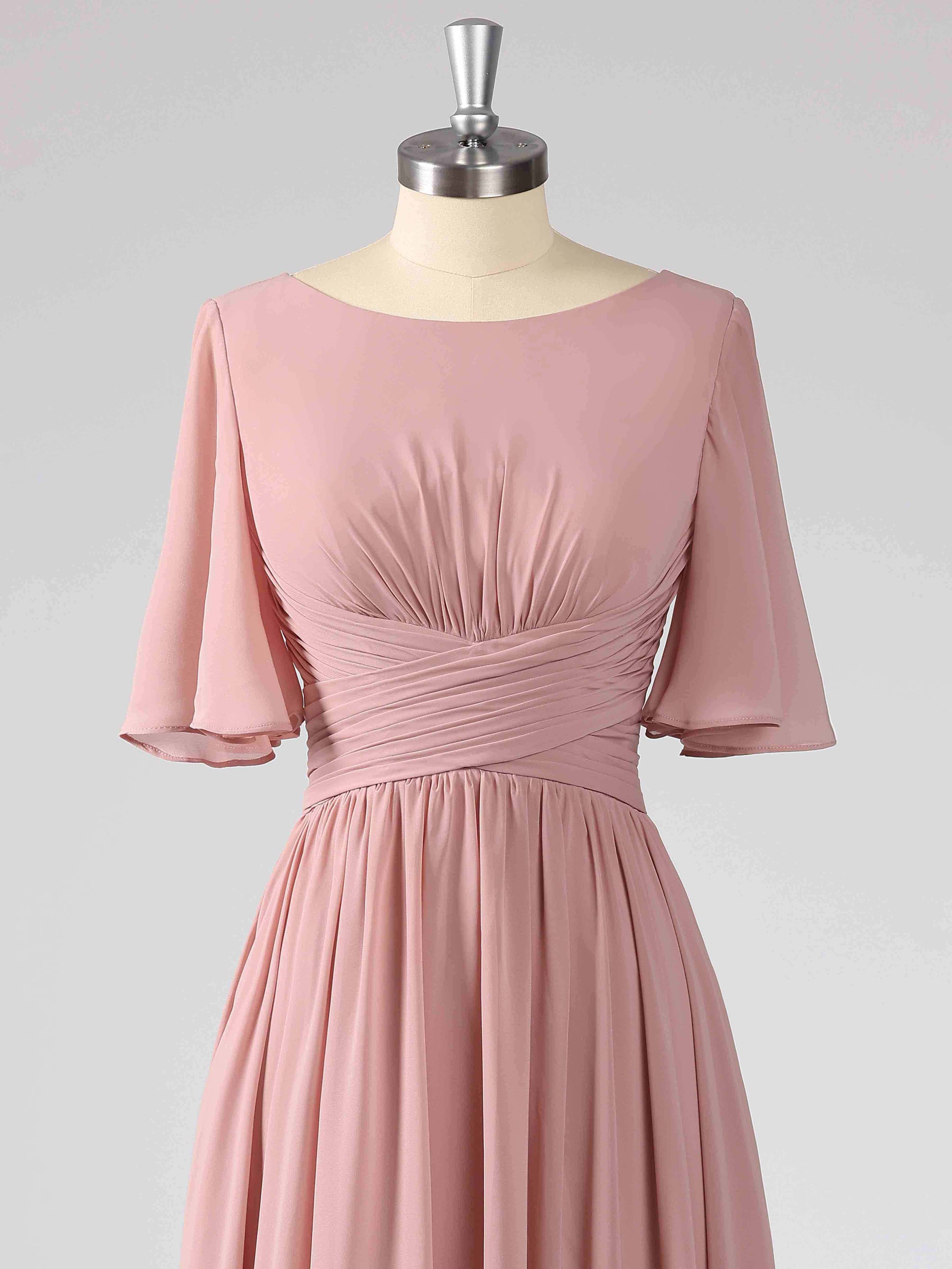 • The Layla Modest A-line Boat Neck Bridesmaid Dress blends elegance and comfort. Its boat neckline, A-line skirt, and subtle slit flatter all, crafted from lightweight fabric for a sophisticated bridal look.