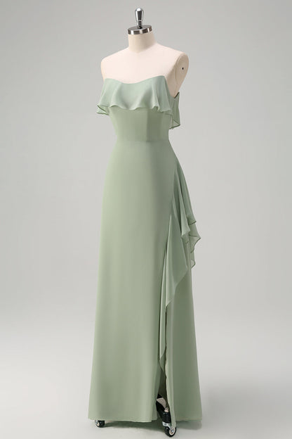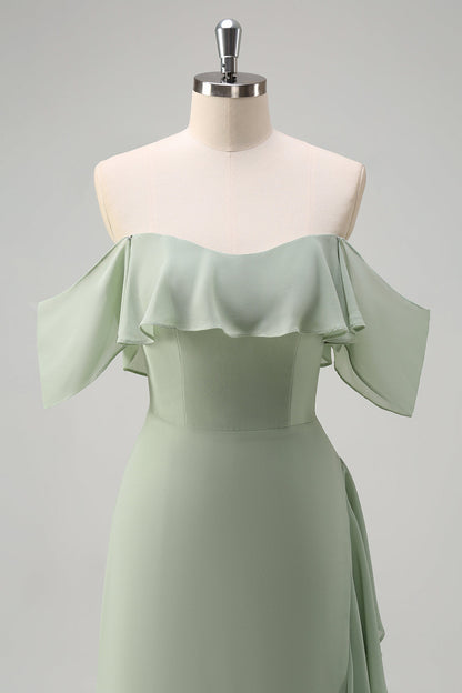 Light Green Off The Shoulder Chiffon Long Bridesmaid Dress