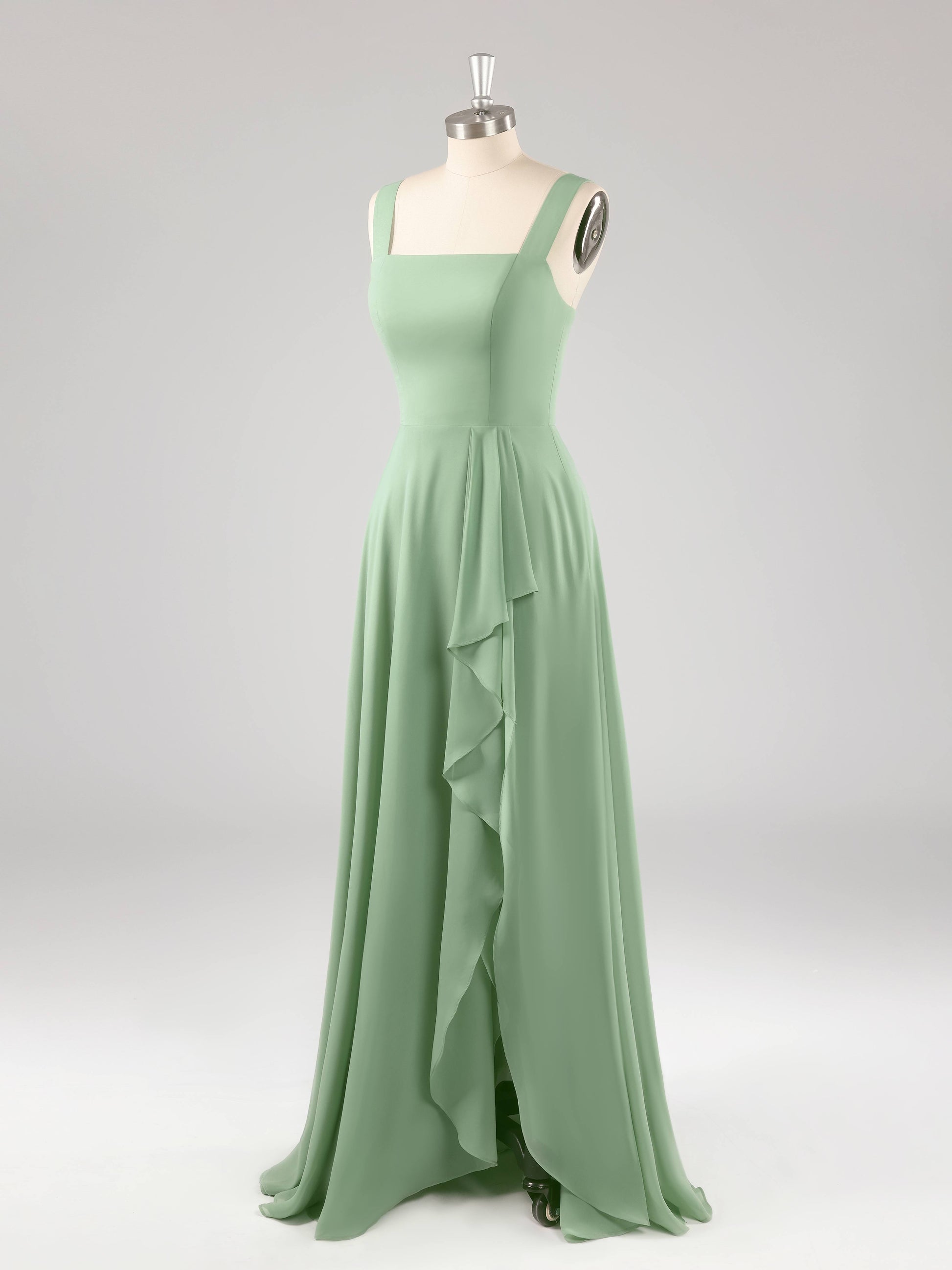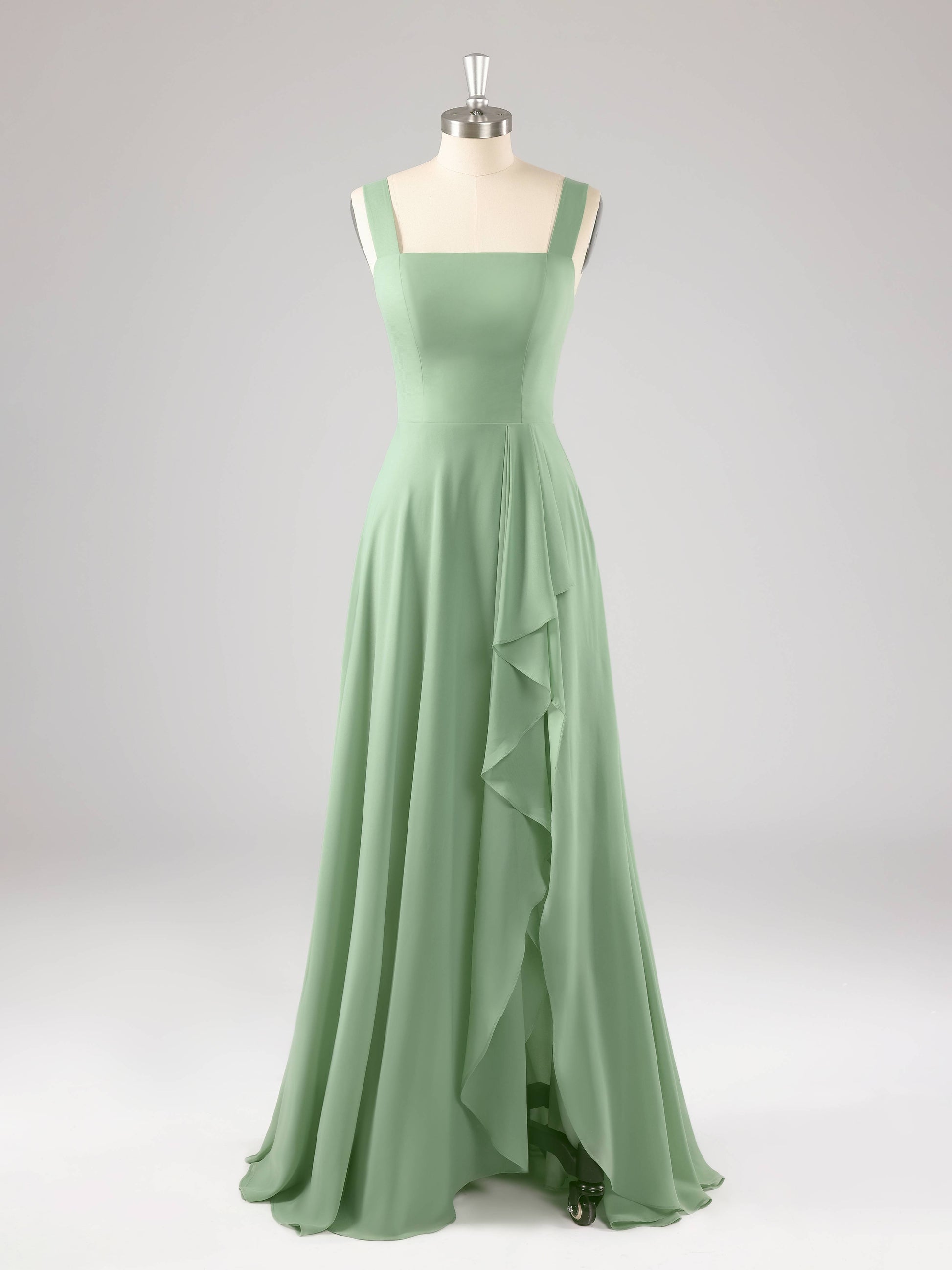 Linnea Square Neckline Sleeveless Ruffles Bridesmaid Dresses