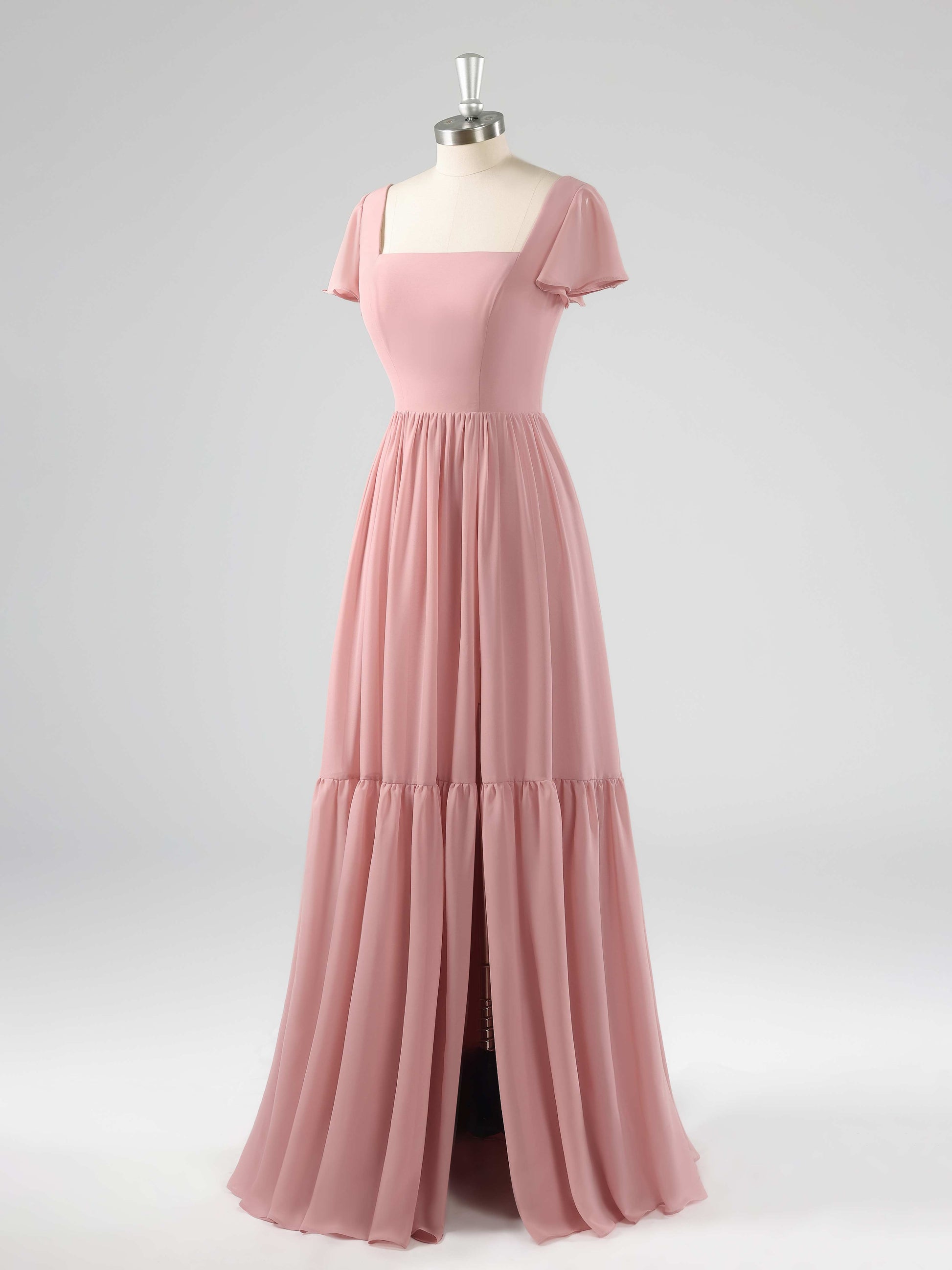 Lissette Modest Flutter Sleeves Bridesmaid Dresses with Slit