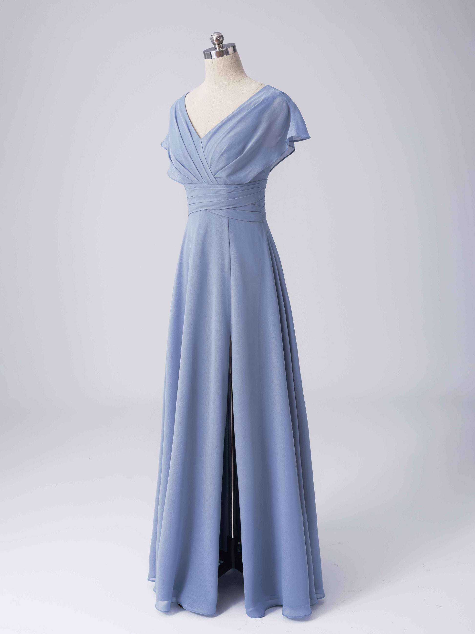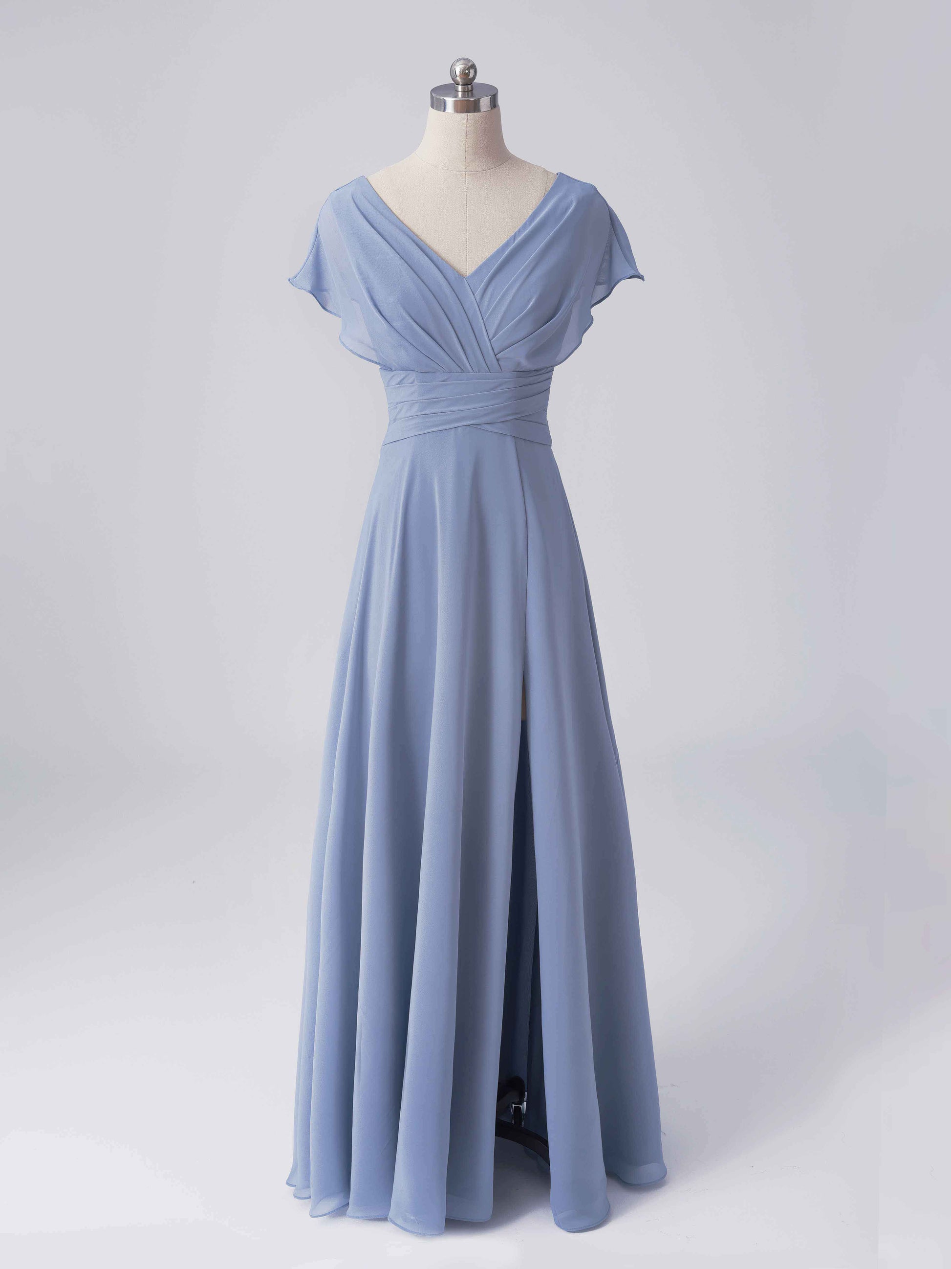 • Effortlessly chic A-line bridesmaid dresses with ruffled cap sleeves. Balancing understated elegance and delicate femininity—perfect for complementing wedding ensembles. Order yours today.