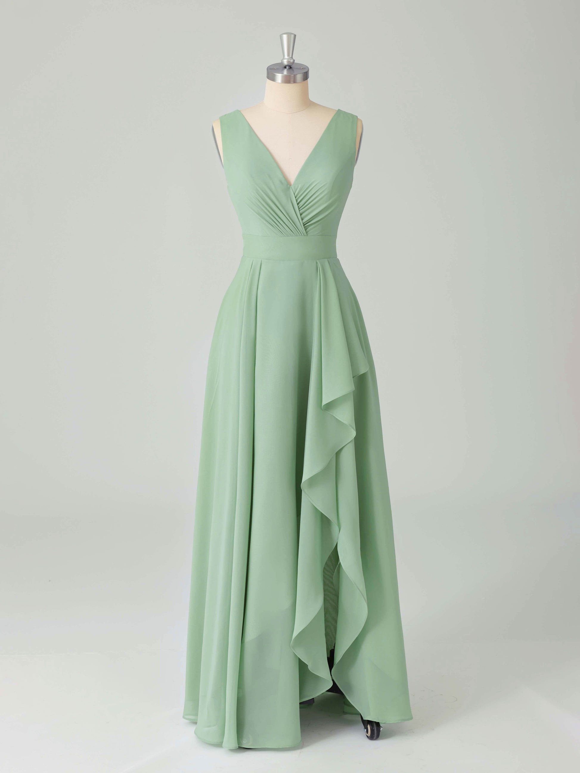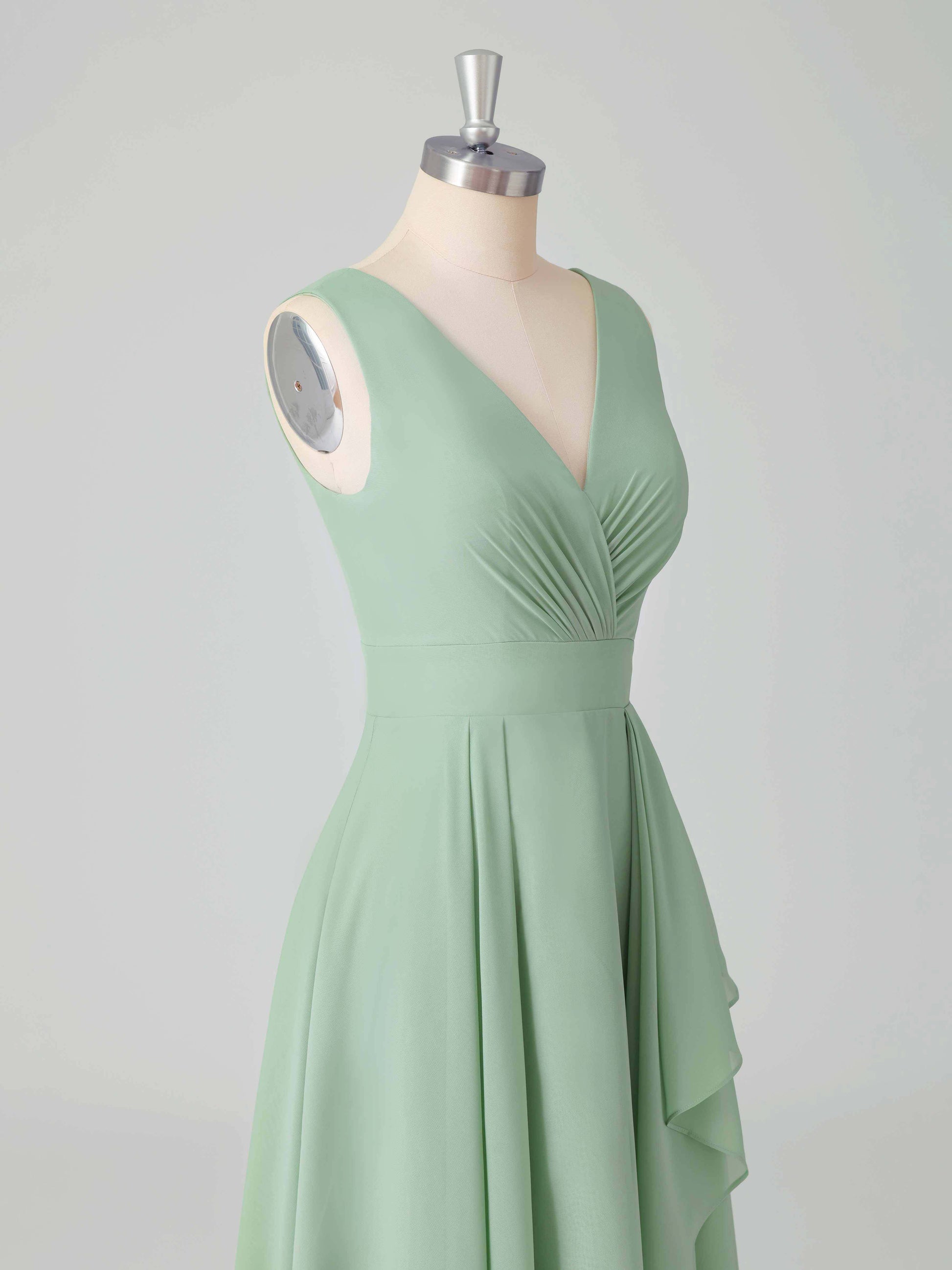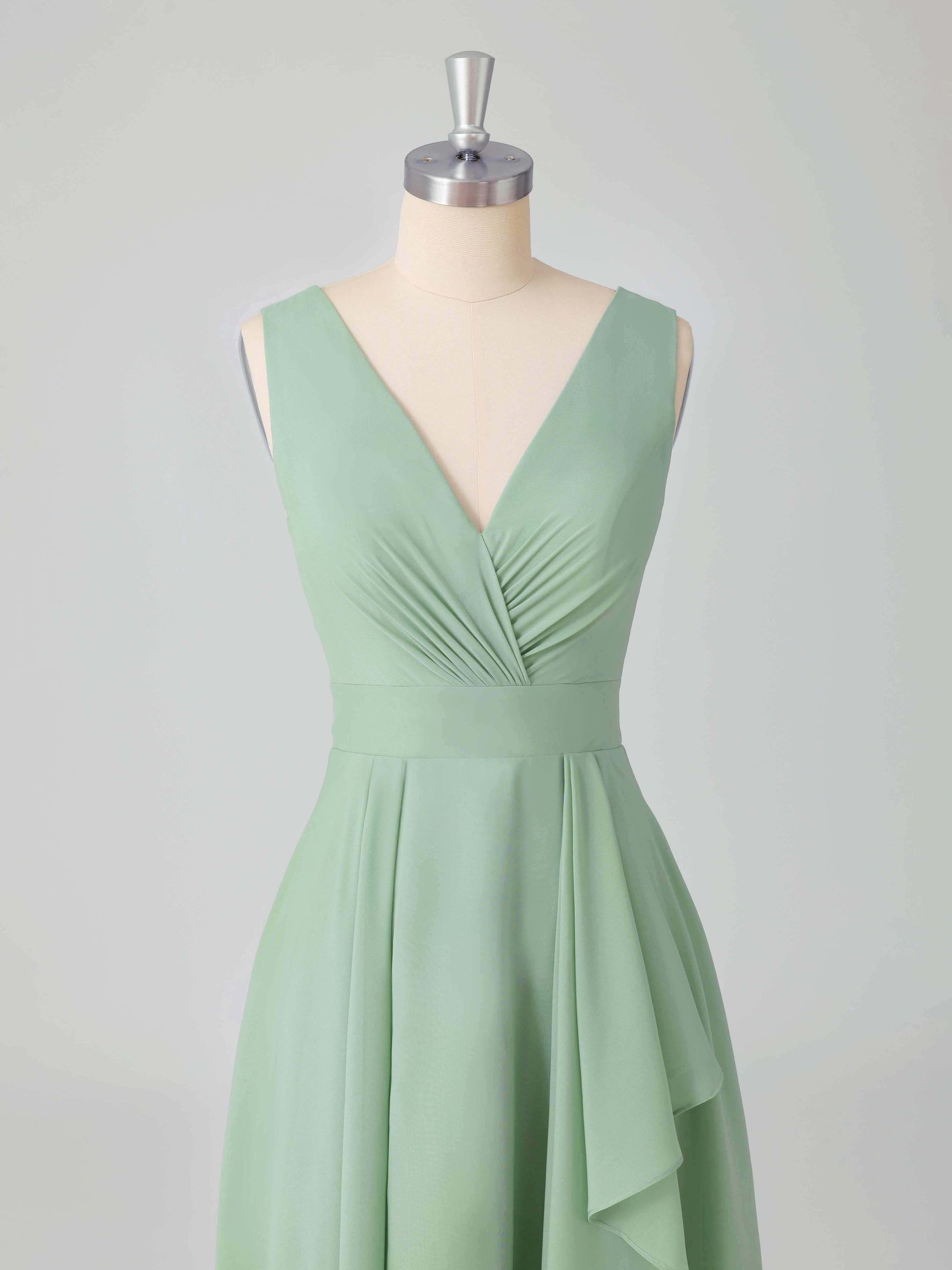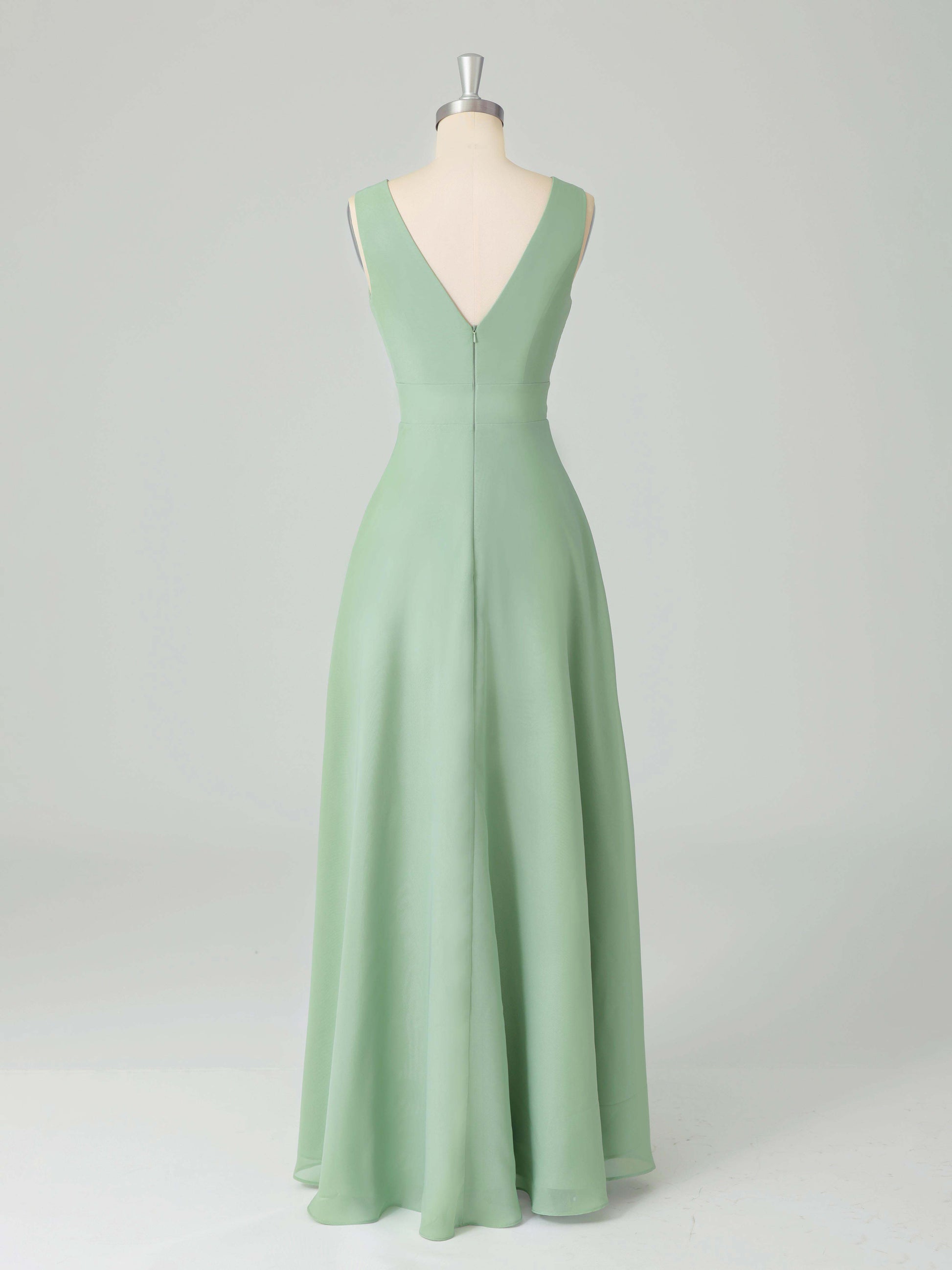 • Sleeveless A-line bridesmaid dresses exude understated elegance with a deep V-back. Flattering all figures in lightweight, movement-friendly fabric—ideal for weddings. Shop now.