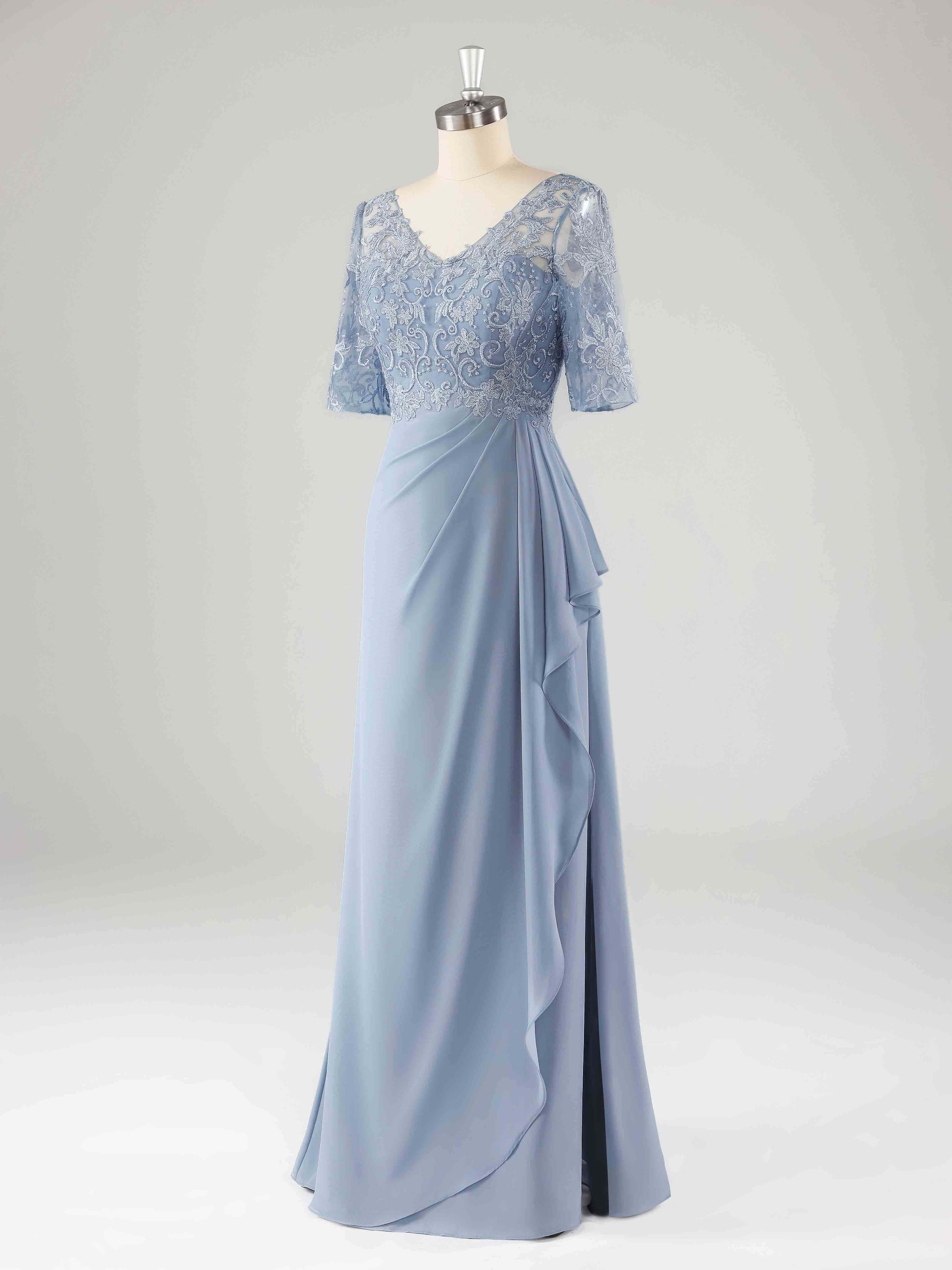 Malia Classy V-Neck Chiffon Mother of the Bride Dresses with Slit