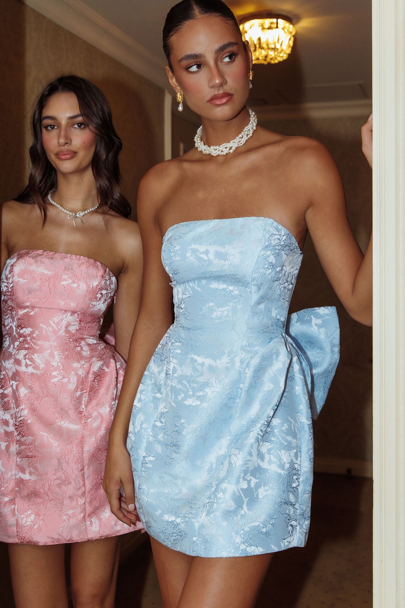 Embrace your inner royal with our Melty Kisses mini dress. This dress redefines sophistication with its oversized bow and lace up corset back. Perfect for both day and evening wear, this dress effortlessly transitions from glamorous nights out to romantic dates.
