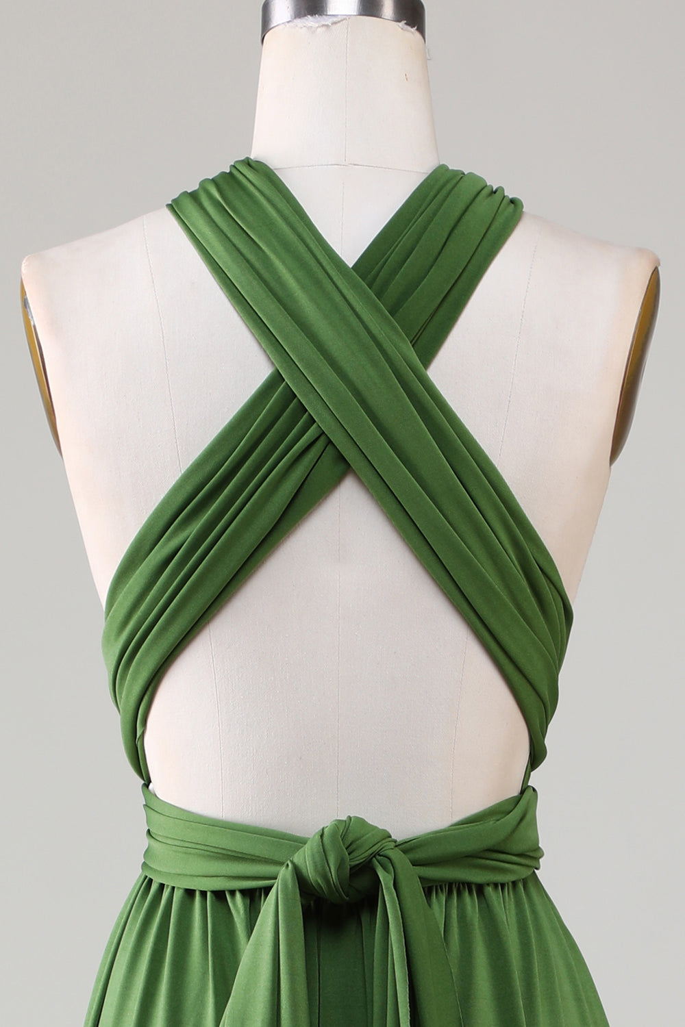 Olive Green Spandex Convertible Wear Long Bridesmaid Dress