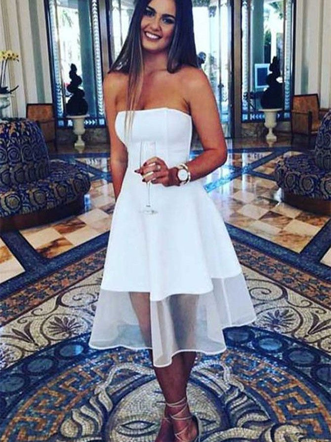 Popular Satin Homecoming Dresses A-line Strapless Short Gowns