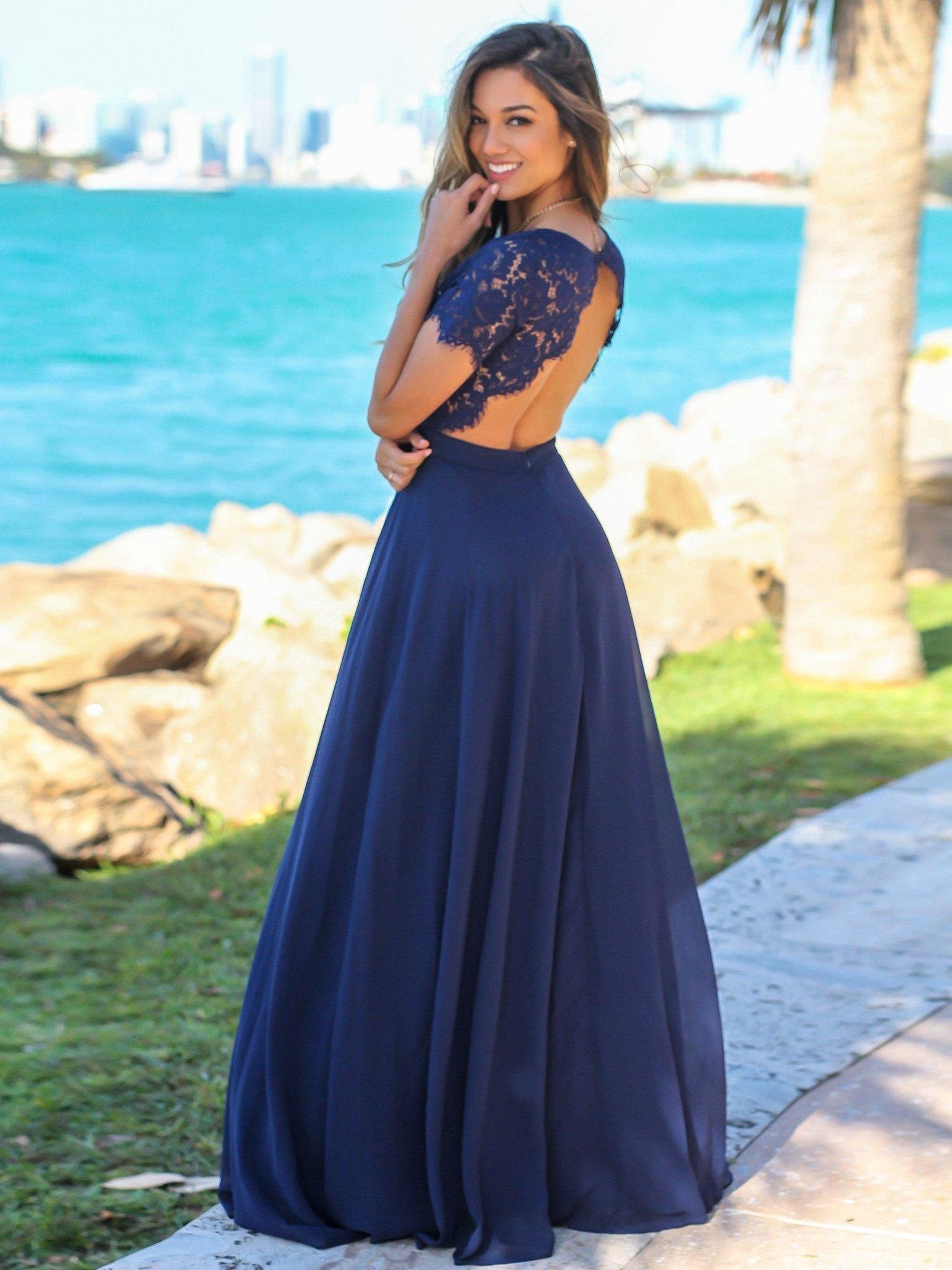 * It is made of lace and chiffon. Featuring sweetheart neckline, short sleeves and open back on the bodice gives this dress glamorous feeling. A-line skirt will make look more charming. Finished with zipper closure.