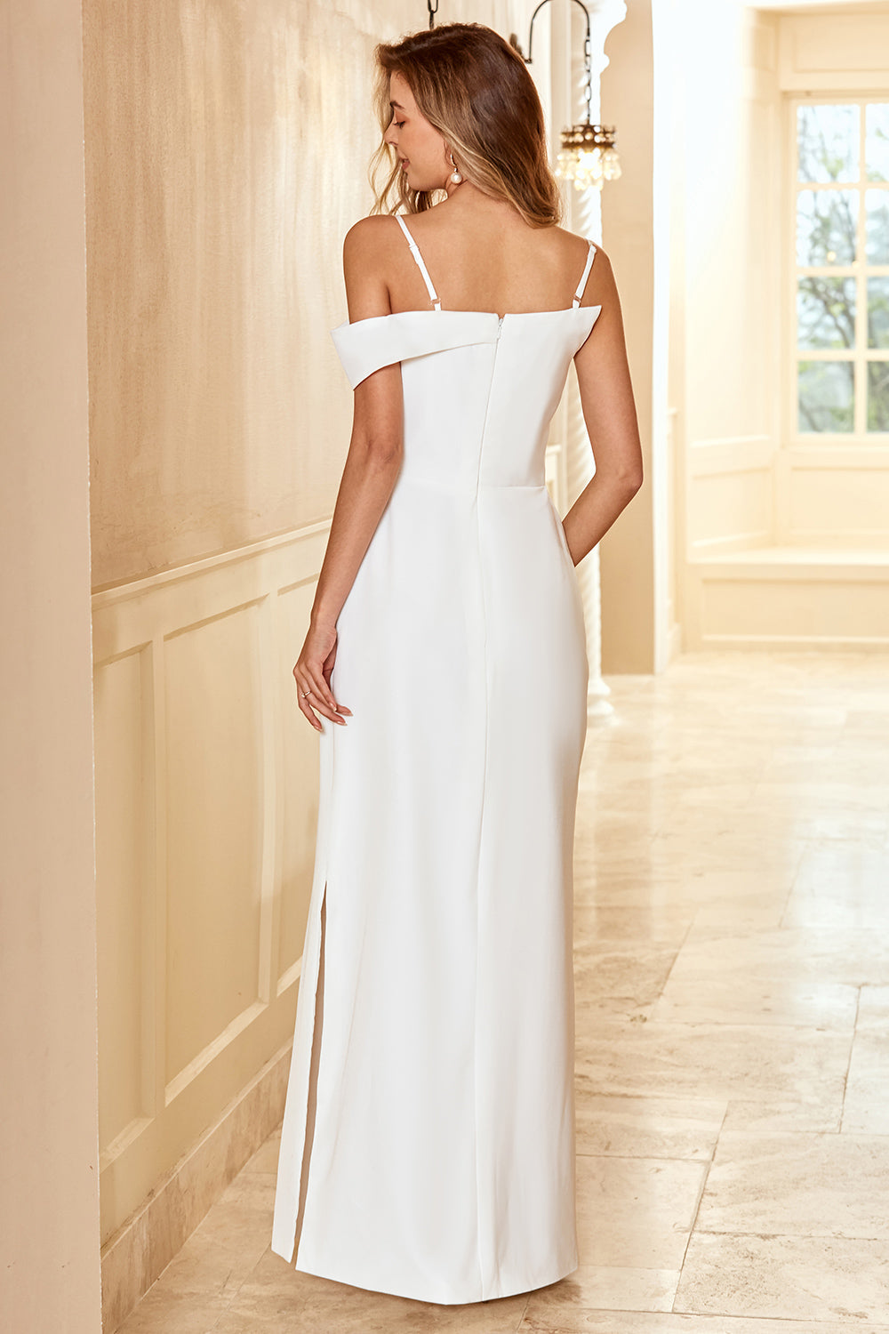 Sheath Spaghetti Straps White Long Bridesmaid Dress
