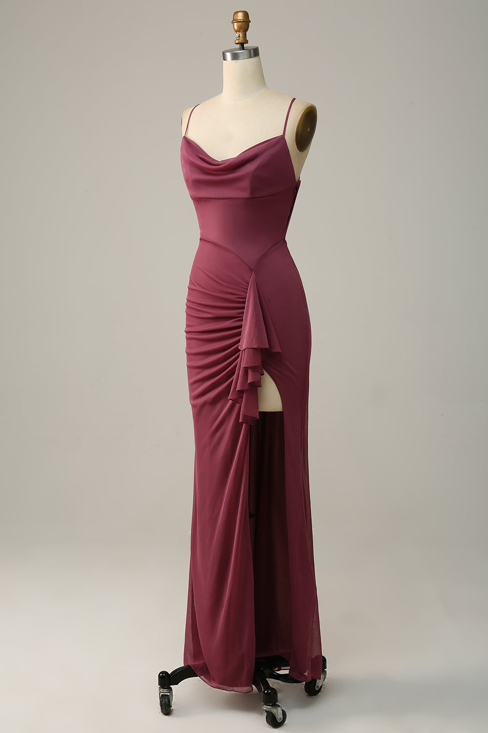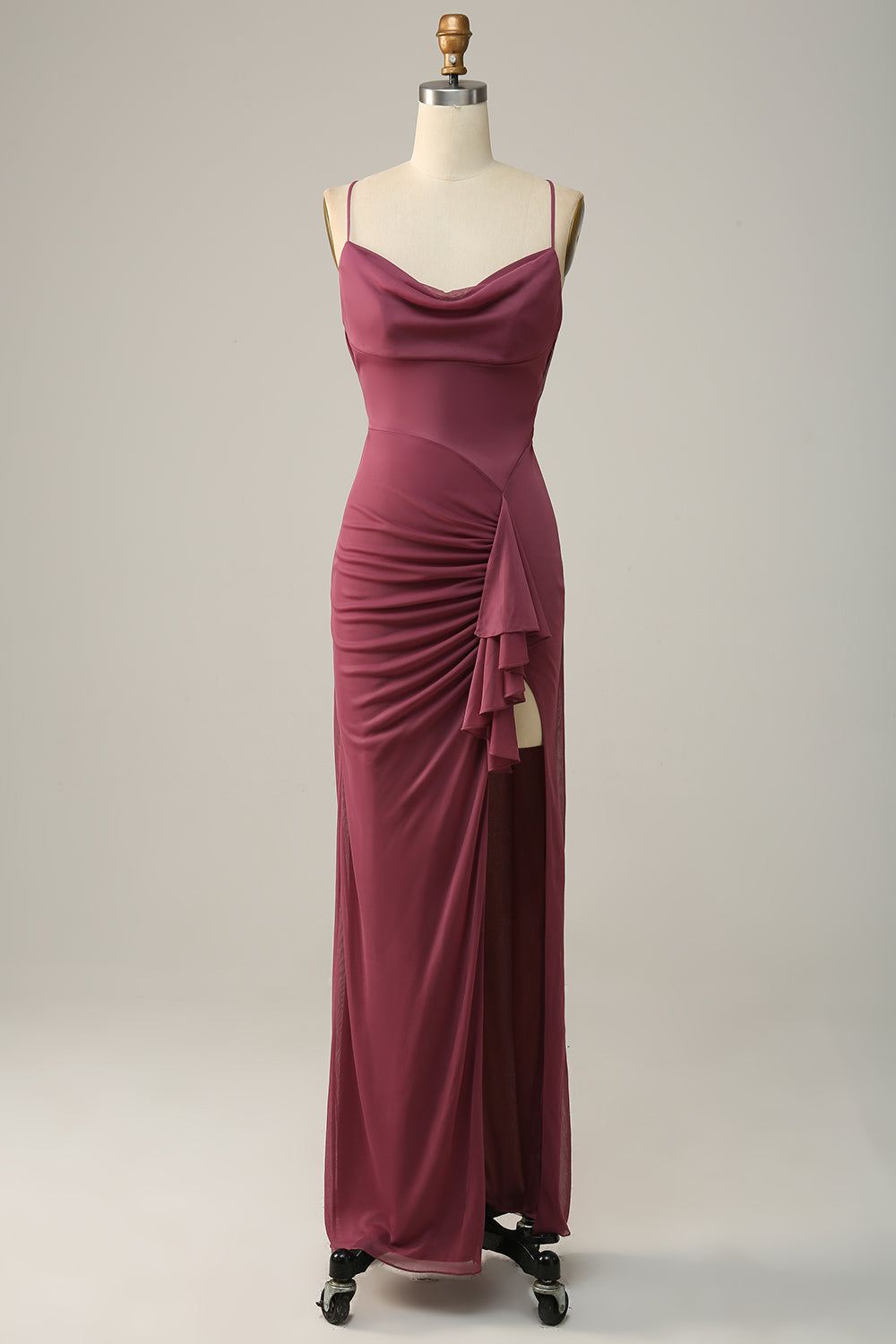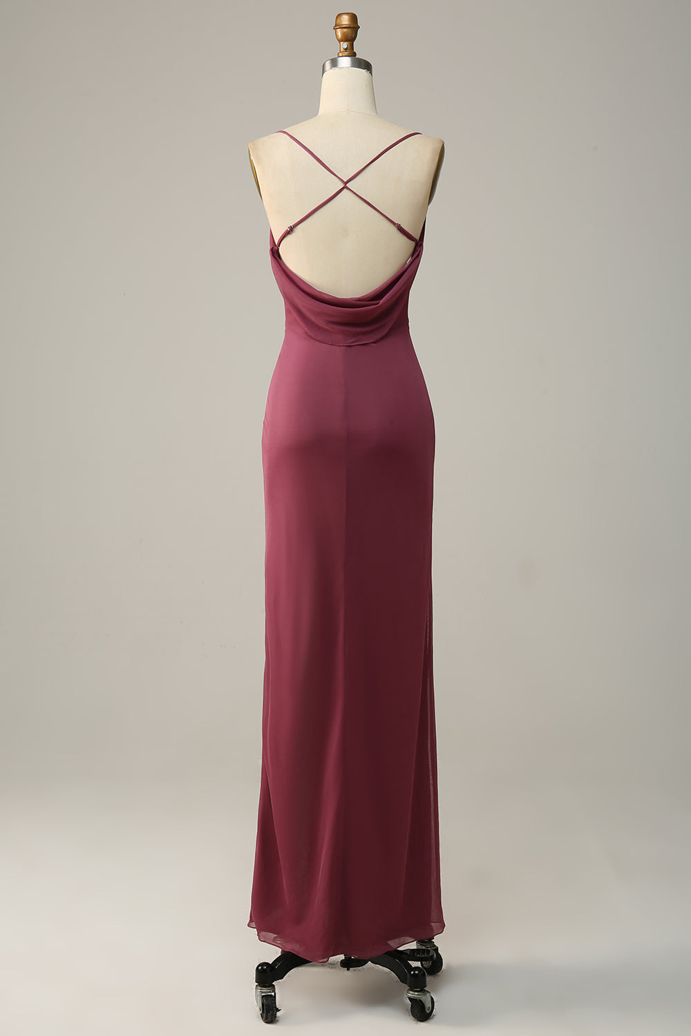 Spaghetti Straps Cross Back Desert Rose Bridesmaid Dress