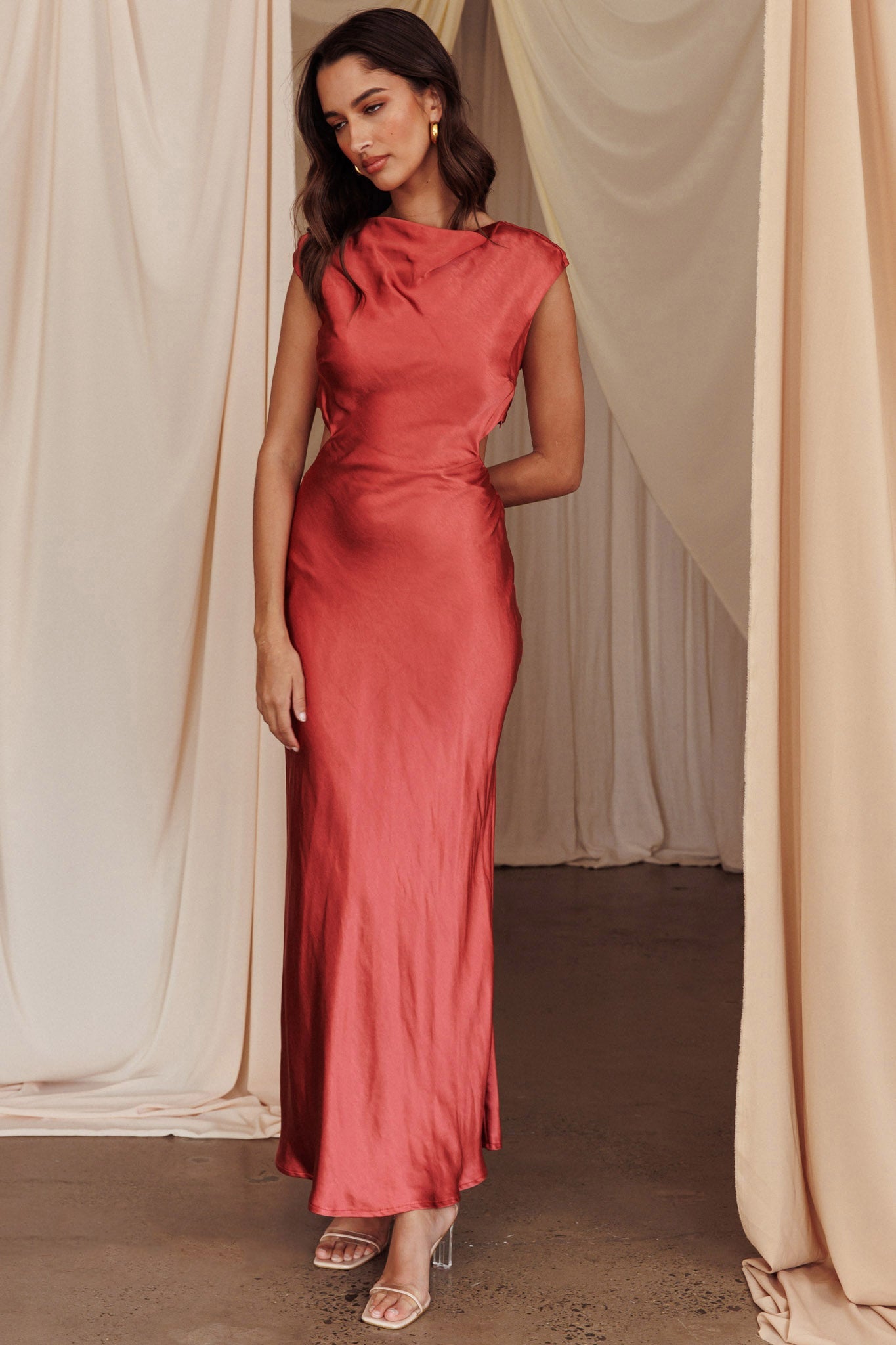 Starlight Sonata Cut-Out Cowl Back Maxi Dress Autumn