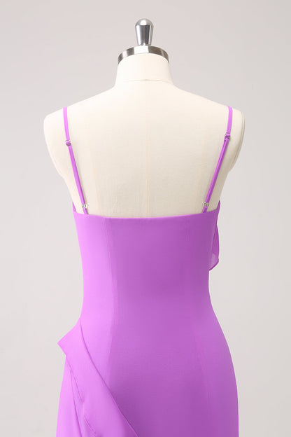 Tahiti Ruffle Spaghetti Straps Chiffon Long Bridesmaid Dress with Slit