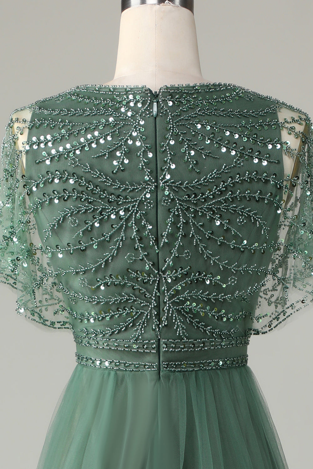 Tulle A-Line Beaded Eucalyptus Bridesmaid Dress with Sequins