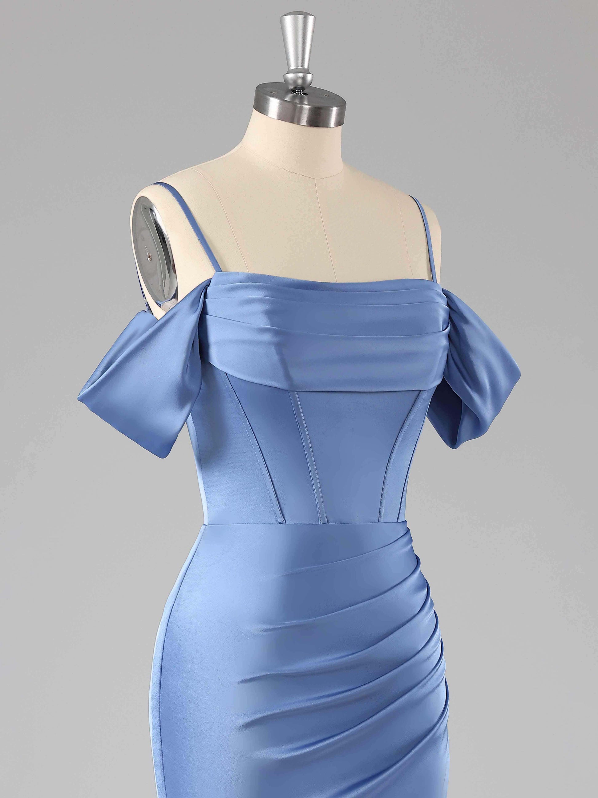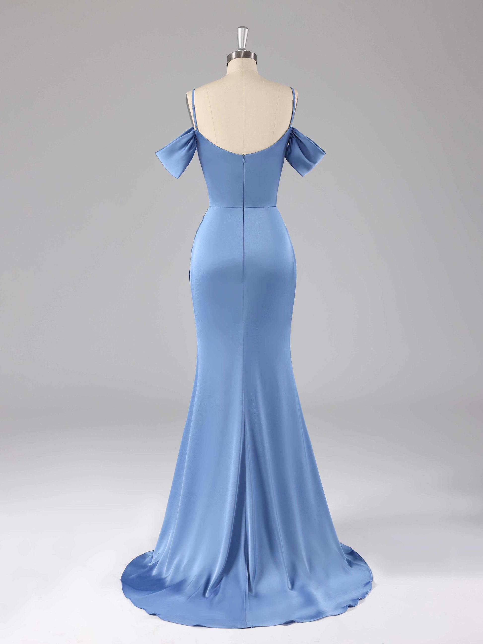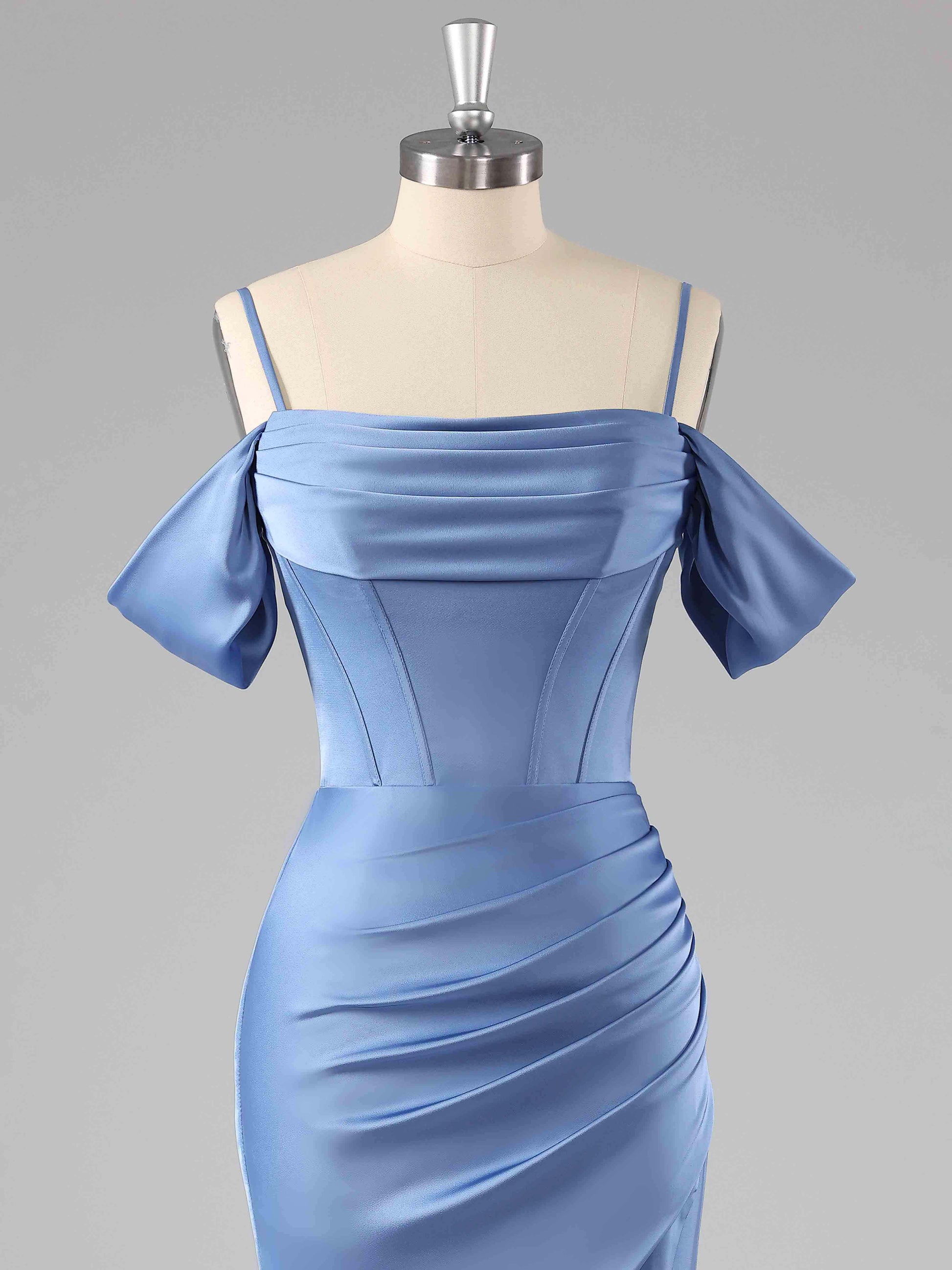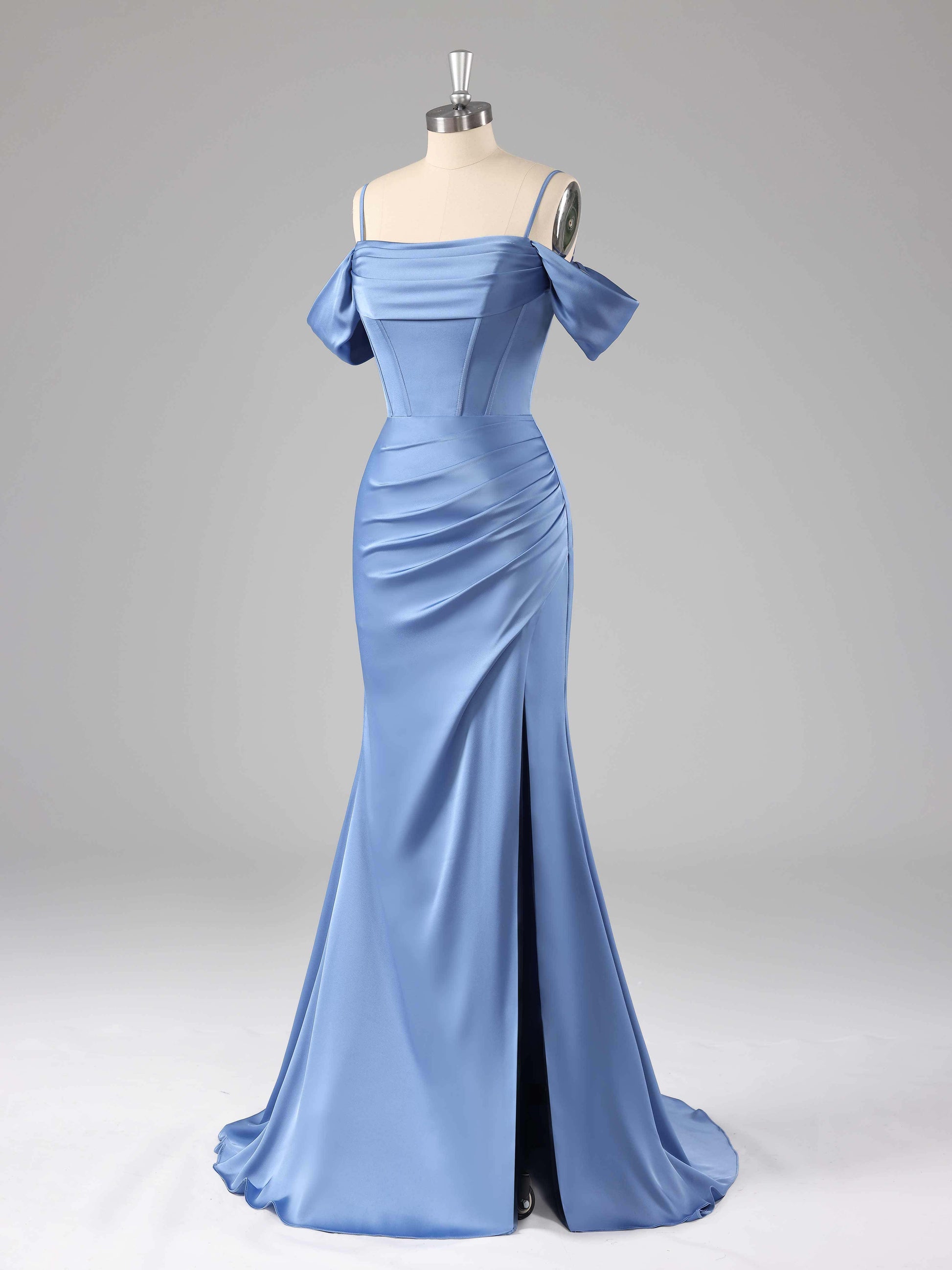 Vida Chic Off-The-Shoulder Sweep Train Satin Dresses